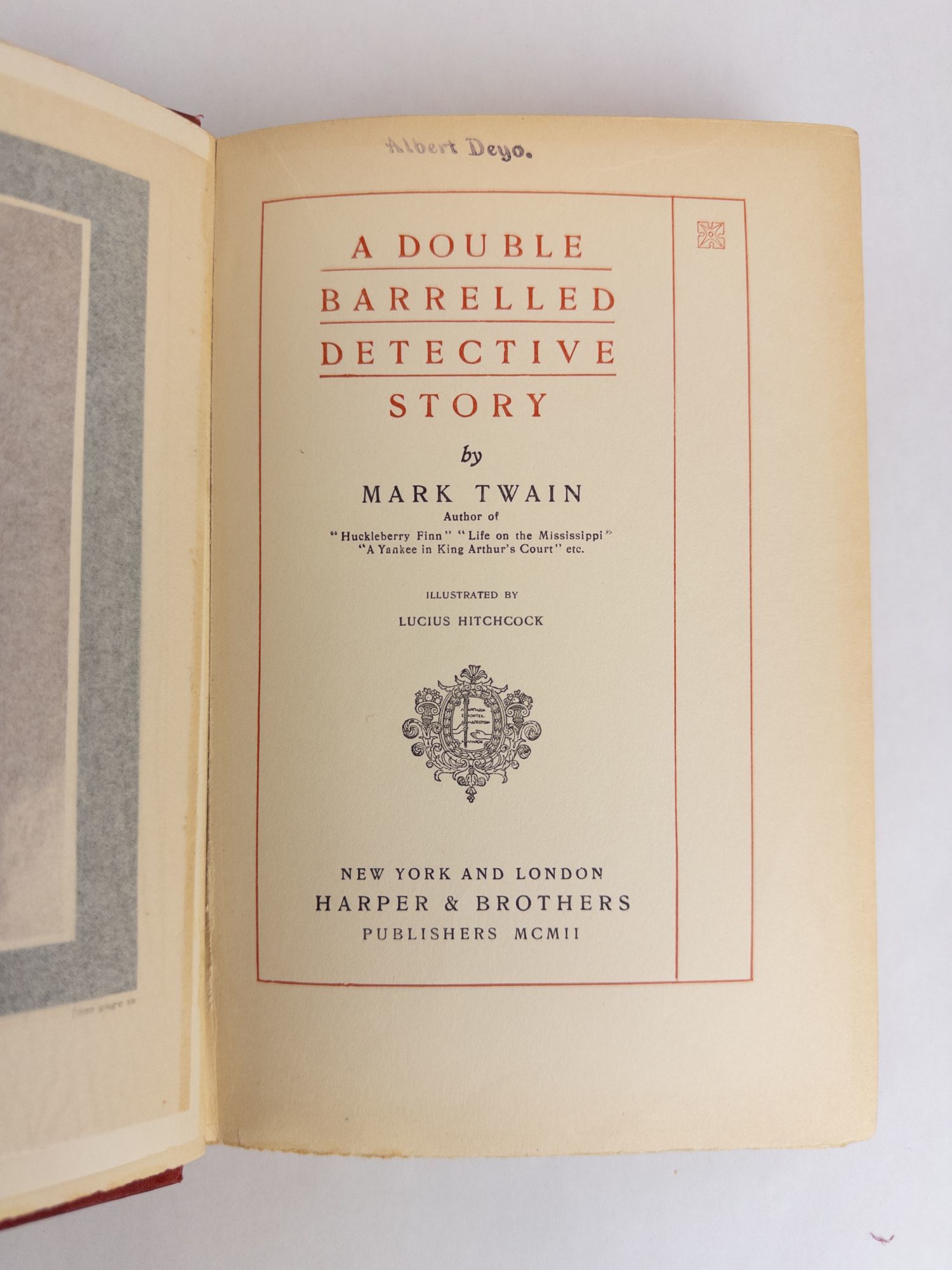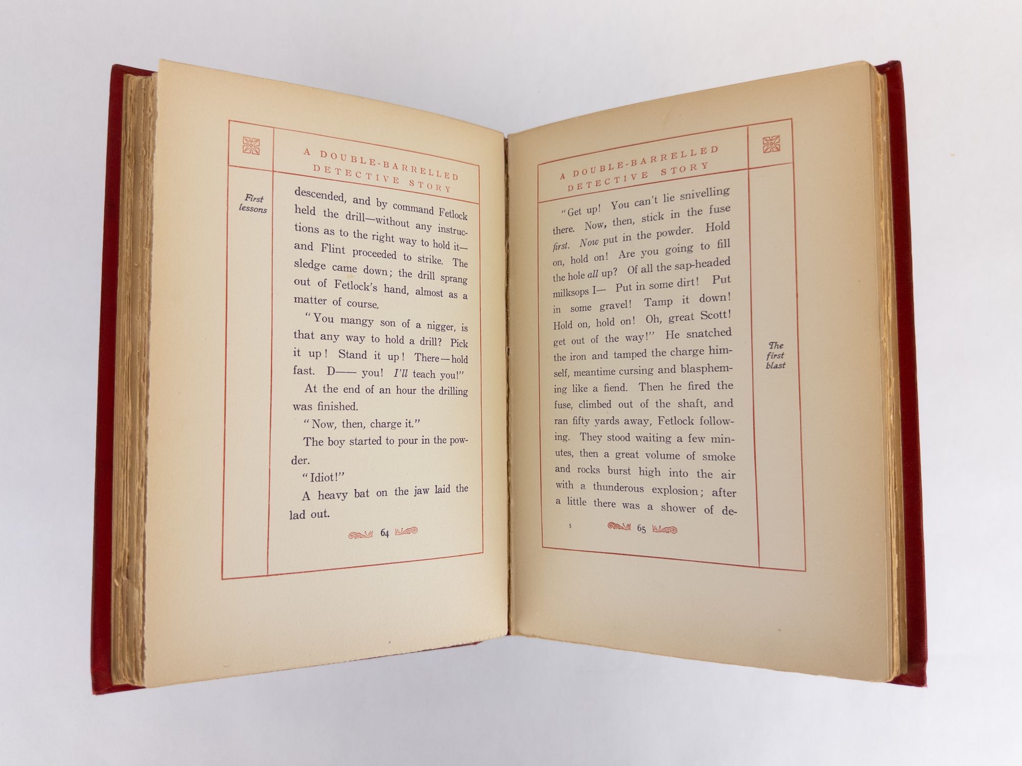 New York: Harper & Brothers, 1902. First Edition, First Printing. Hardcover. Octavo, 179 pages. In Very Good condition. Bound in publisher's decorated red variant cloth with gilt lettering to spine. Sunning to spine. Fraying and wear to head and tail of spine. Rubbing and light bumping to corners of boards. Light wear to hinges. Mild scuffing. Top edge of textblock gilt, faded. Fore and bottom edges deckled. Staining to endpapers and pastedowns. Gutter visible between first and second free endpapers. Age toning throughout. Previous owner's name stamped on title page and rear pastedown. Shelved in Case 13. BAL 3471. 1376287. Shelved Dupont Bookstore.