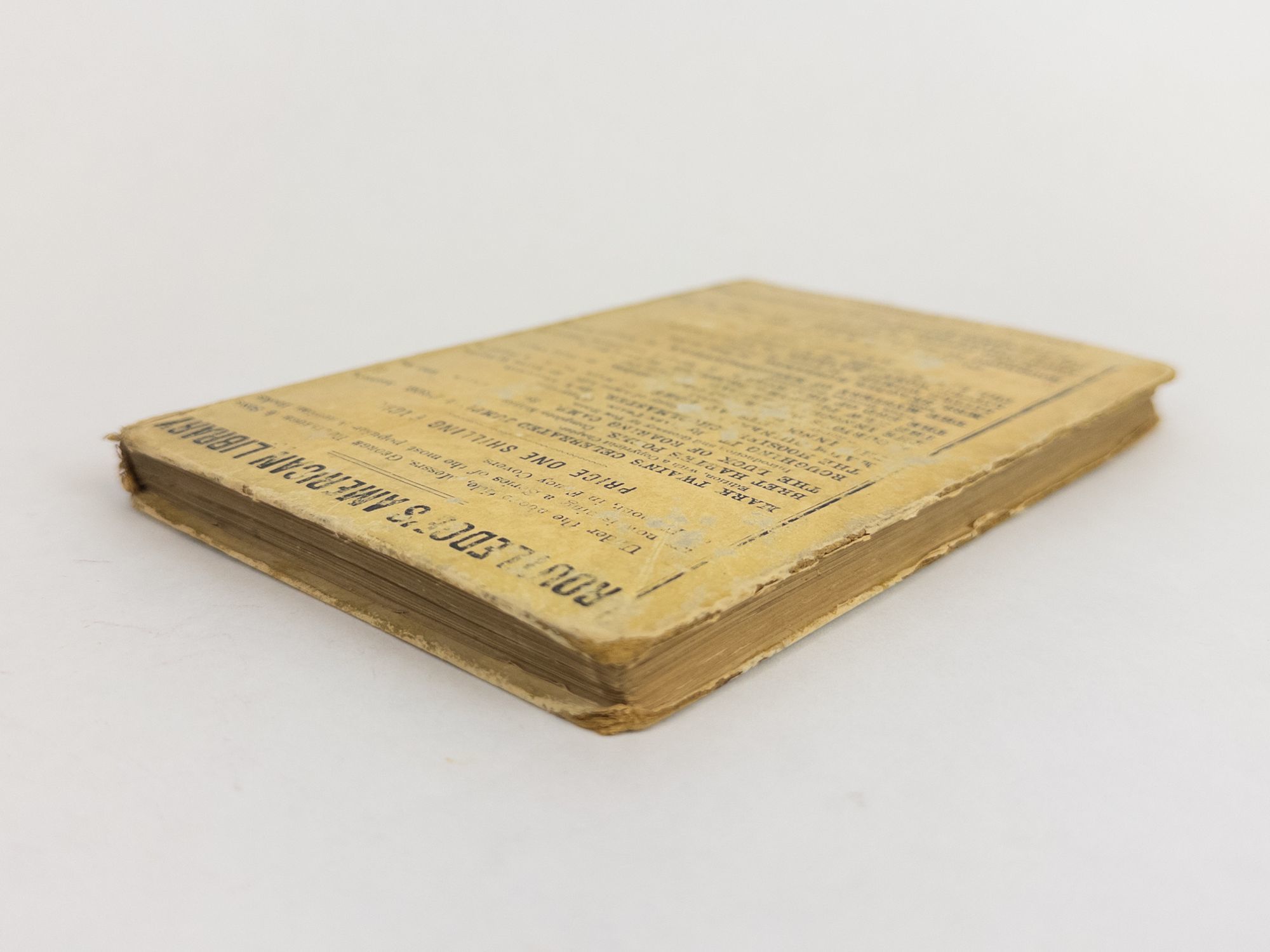 Notoriously fragile. Scuffing to boards and along edges. Splitting to spine, with webbing exposed. Tape reinforcement to rear gutter. Front board partially detached, measuring about 4 inches from head of spine. Age-toning to interior pages. Writing on front free endpaper and title page. Shelved in Case 3. Routledge printed nearly 1300 titles in their Railway Library series beginning in 1848. Frequently sold near train stations and other hubs, they were intended for traveling reading, and many did not survive the journeys. Routledge used eye-catching covers to entice travelers, hence the macabre cover. The title story led to national cemetery reform movement. BAL 3340. 1376396. Shelved Dupont Bookstore.