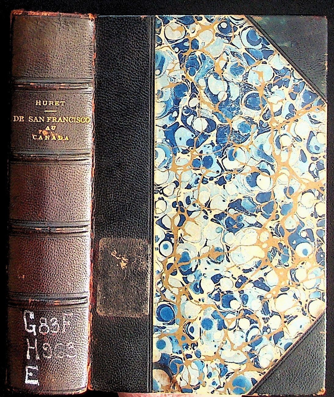Paris: Bibliotheque-Charpentier, 1905. Hardcover. Good. Hardcover. [IN FRENCH] Jules Huret (1863-1915) was a French journalist known for his interviews with writers, including Emile Zola, Guy de Maupassant, and Anatole France. He also published a work about Sarah Bernhardt. Around age 50, he began making international voyages, including to the United States. In 1904, he published a book of travel from New York to New Orleans, followed in 1905 by this travelogue from San Francisco to Canada. Octavo. Bound in three-quarter leather with blue and brown marbled paper-covered boards and marbled end papers. Gilt title to spine. Ex-library, with library number at bottom of spine, and evidence of removed label on leather of front board. Rubbing to edges of leather, especially on front joint. Pages are browned, with some minor foxing. 564 pages, including index. FRLANG/012424.