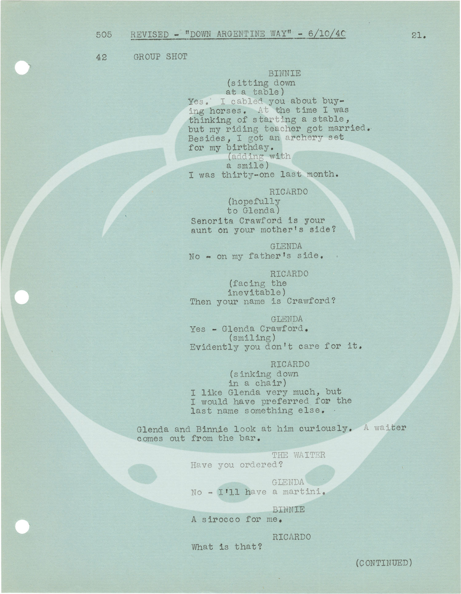 Down Argentine Way (Original screenplay for the 1940 film)