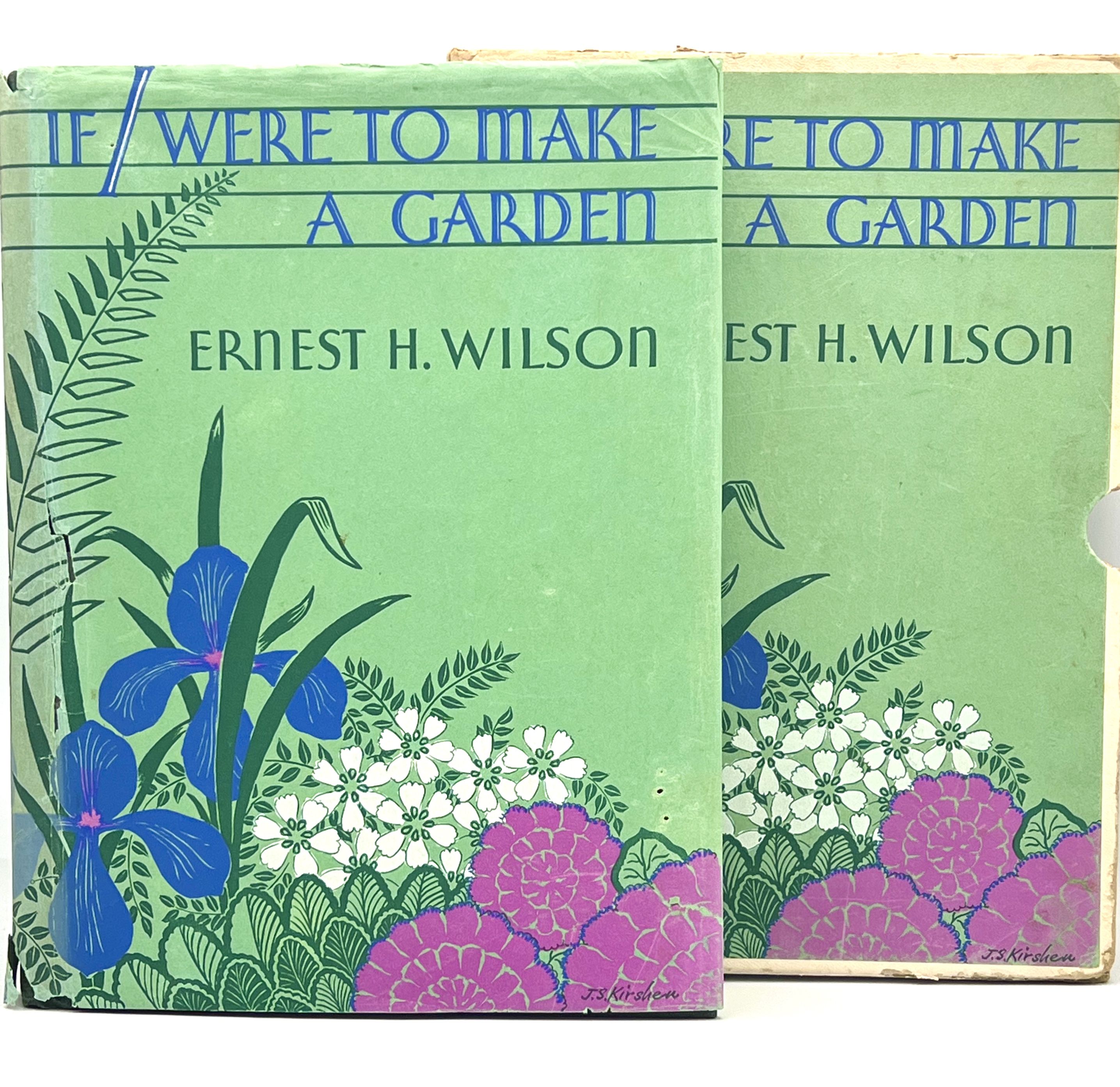 Boston: THE STRATFORD COMPANY, 1931. First Edition. Hardcover. Green faux leather. Near fine, in good dust wrapper and slip case. 294 pages. 28 x 21 cm. Ernest Henry Wilson (1876-1930), better known as E.H. Wilson, was a distinguished British plant collector and explorer who traveled to China (four times), Japan, Korea, Australia, New Zealand, Tasmania, India, Kenya, and South Africa. His contributions to the herbariums of the world number over sixteen thousand specimens; with over five thousand photographs; he introduced more than a thousand specimens, and introduced more than a thousand species previously unknown to cultivation; wrote twelve books and three hundred and eighty articles for various magazines. This book came out of the idea later in life (he tragically died in an automobile accident in his 50's) when the thought came to him: "What would I plant if I were to start all over again and plant a garden here in my new home in Massachusetts?" A perfect book for every amateur gardener - with the wisdom of one of the most notable horticulturists of the late 19th and early 20th century. Illustrated with 38 halftone plates from photographs. Ex Libris: Geoffrey Gordon Whitney/Alice Thaw Whitney. Geoffrey G. Whitney, a noted horticulturist and Stockbroker. Alice T. Whitney was the sister of Harry Kendall Thaw, married to Evelyn Nesbit, and most notable for murdering the renowned architect Stanford White in front of hundreds of witnesses at the rooftop theater of Madison Square Garden. Interior and board clean and crisp. Dust wrapper rubbed and chipped at edges. Housed in original illustrated, paper covered slip case - rubbed and chipped.