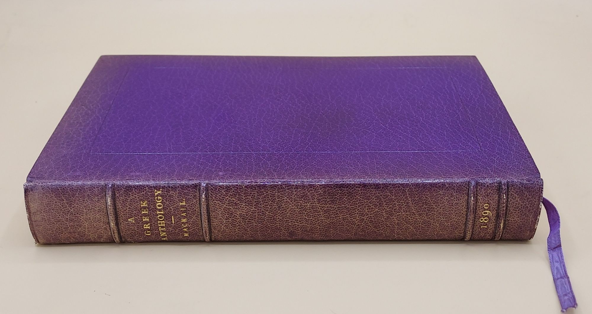 London: Longmans, Green, and Co, 1890. Revised edition. Leather bound. Very Good. 403pp. Octavo [22 cm] Elegantly bound in purple leather with raised bands, a gilt stamped title on the spine, and single blind-ruled borders on the boards. All edges gilt. Lavish gilt turn-ins. The spine is sunned and the edges of the boards are faintly sunned. There is a contemporary owner's name, along with the date "December 10th, 1906" in small, neat pen on the front flyleaf. Edited with A Revised Text, Introduction, Translation and Notes by J. W. Mackail Fellow of Balliol College, Oxford.