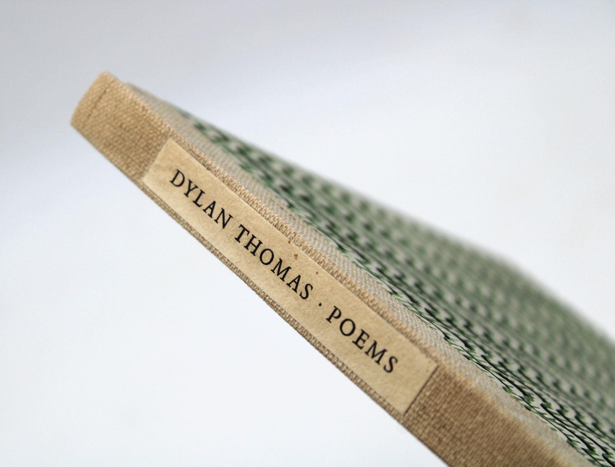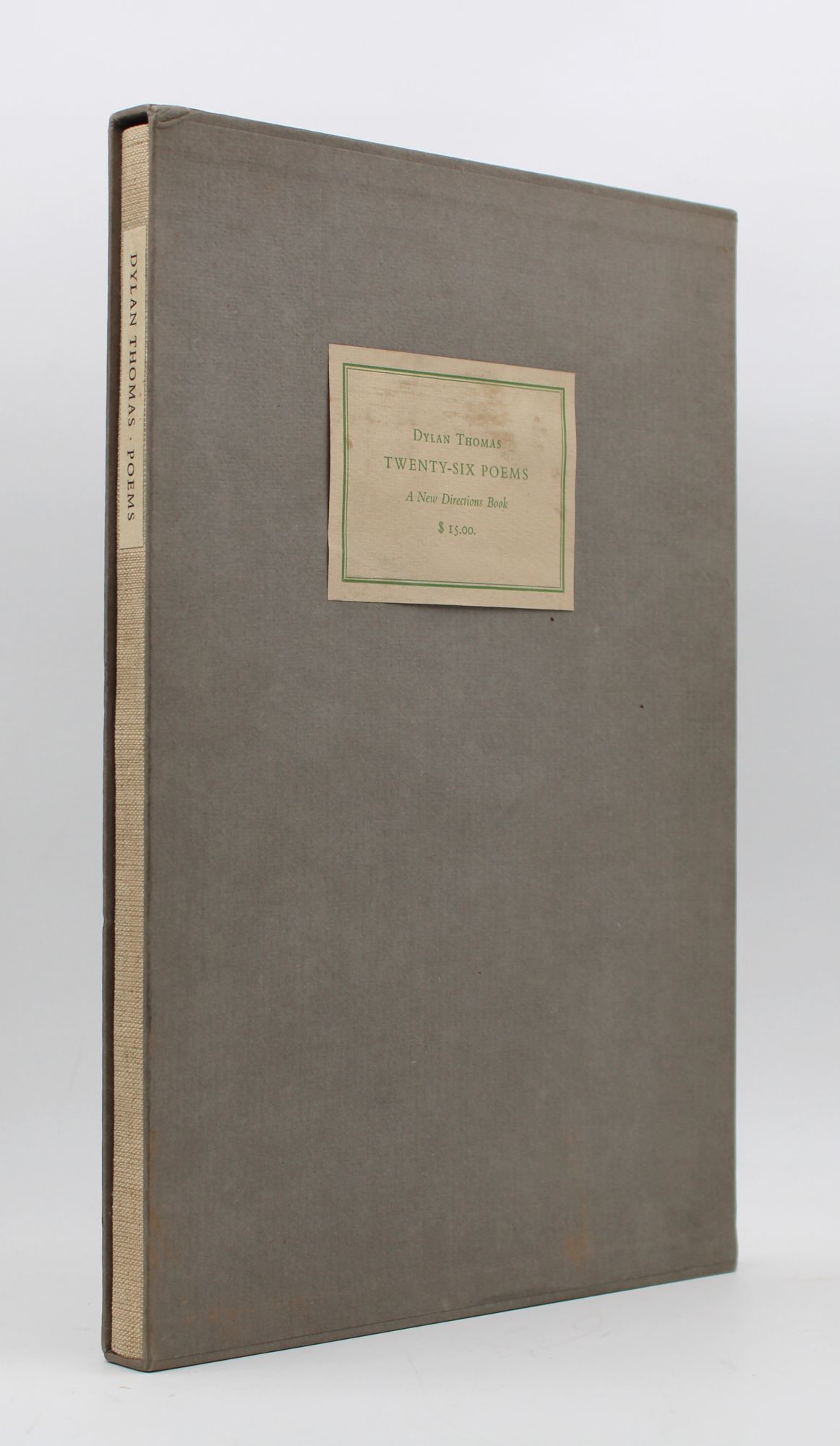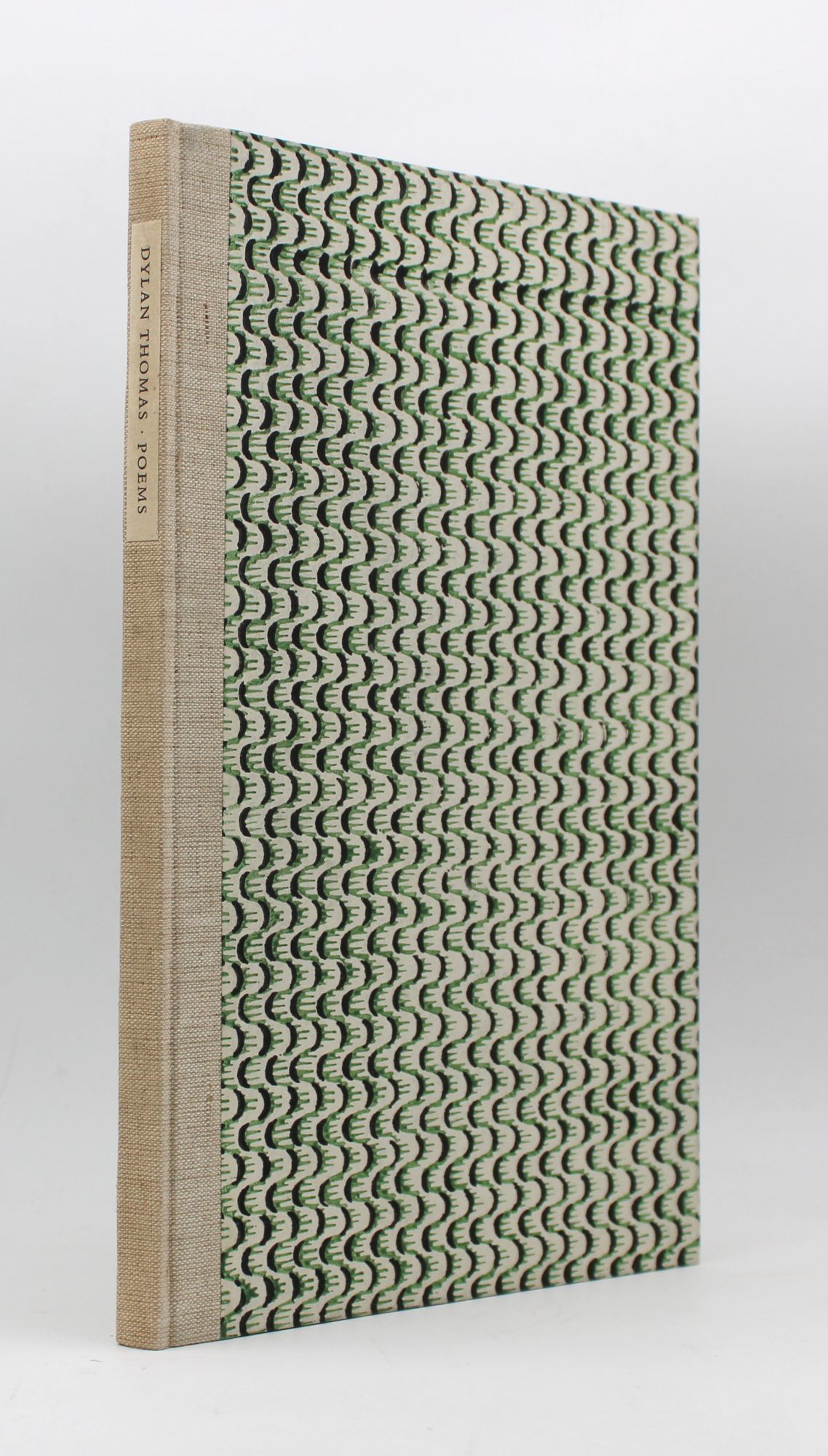 [Verona: Printed for James Laughlin and J.M. Dent by Officina Bodoni in Verona, 1949. First edition, no. 128 of 140 copies on handmade Ciconia paper, signed by the author (“Dylan Thomas”) on the colophon. Printed by Mardersteig at the Officina Bodoni. 76, [2] pp. 1 vols. 4to. Linen spine and patterned paste paper boards, printed spine label. Faintest rubbing, near fine in original publisher's slipcase with paper label (some paste staining to label, archival tape repair at bottom edge of box). First edition, no. 128 of 140 copies on handmade Ciconia paper, signed by the author (“Dylan Thomas”) on the colophon. Printed by Mardersteig at the Officina Bodoni. 76, [2] pp. 1 vols. 4to. ‘In my craft or sullen art’