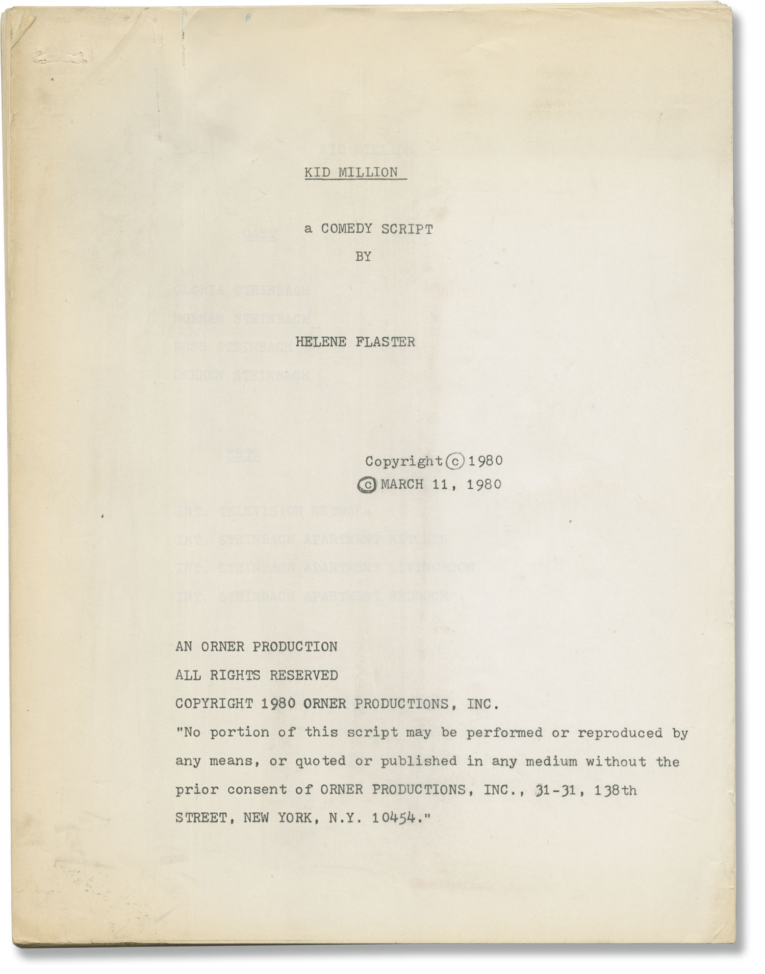 New York: Orner Productions, 1980. Draft script for an unproduced film.
