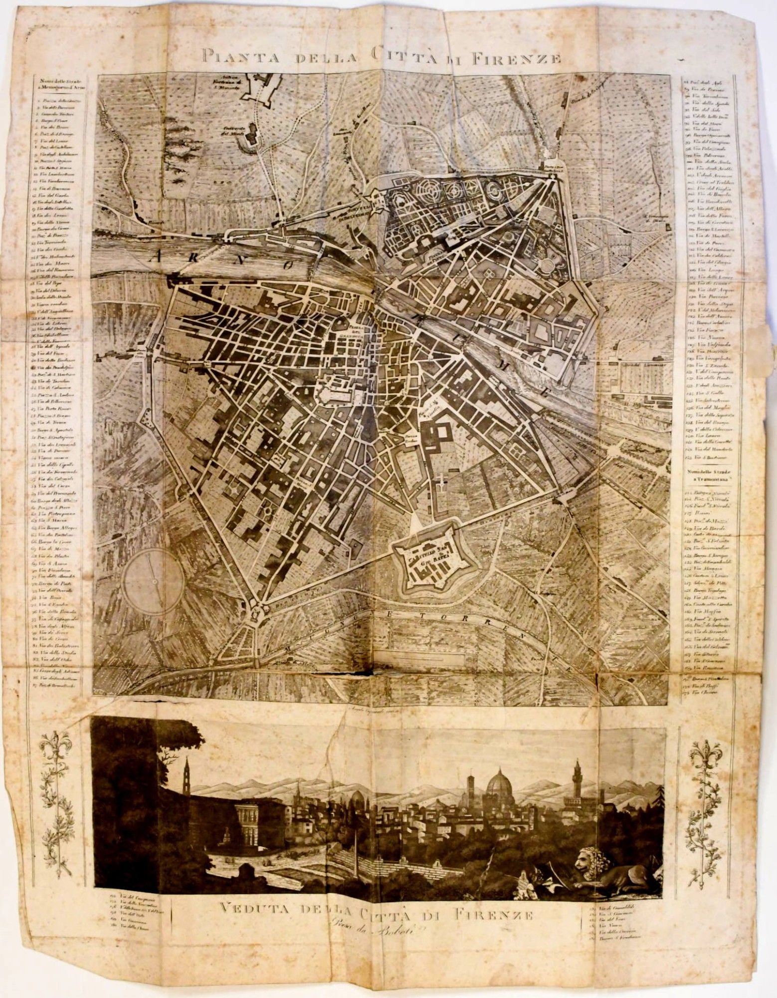 Firenze: Presso Gaspero Ricci, 1821. Terza Editione. Hard Cover. Good+ binding. Eight 8vos,; quarter bound in the publisher's green pebbled cloth over marbled board; there is a large folding plan of Florence with some edgewear and foxing; with a closed tear at the intersection of two folds; much of the back of the folding map has early reinforcing at the folds with paper; all volumes have 2 plates except volumes 3 and 8 which only have one plate; the text is largely clean and bright, but there are 2 or 3 signatures in volume 1 that are generally toned. ~~From the library of Renaissance art historian Sidney Alexander, who lived in Florence for many years. His name is on the front free endpaper of each volume. Mr. Alexander lived in Florence for many years, and penned 15 books on Renaissance history and art, as well as novels. ~~Prior to Sydney Alexander, the set belonged to Dorothy Neville Lees, with her signature also present. Dorothy Lees was born in Staffordshire, and moved to Florence in 1903 where she remained for until her death in 1966. She penned many articles about Tuscany, as well as a couple of books on the subject. She entered into a longterm relationship with Edward Gordon Craig, sharing his devotion to all things related to the art of the theater. ~~This history of Florence has two outstanding Florentine associations.~~. Good+ binding.