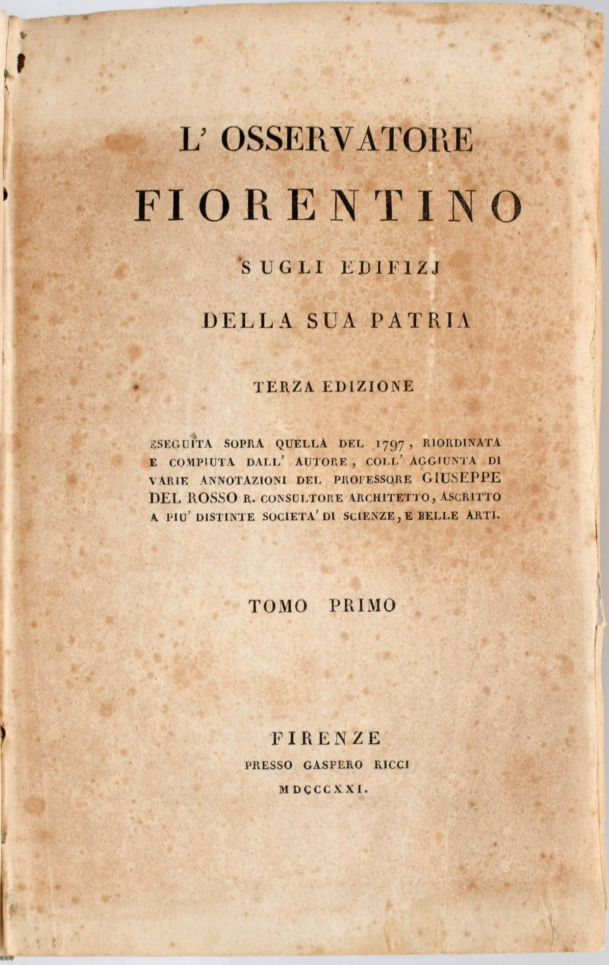 [TRAVEL] L'OSSERVATORE FIORENTINO SUGLI EDIFIZJ DELLA SUA PATRIA [8 Volumes; Complete Set]