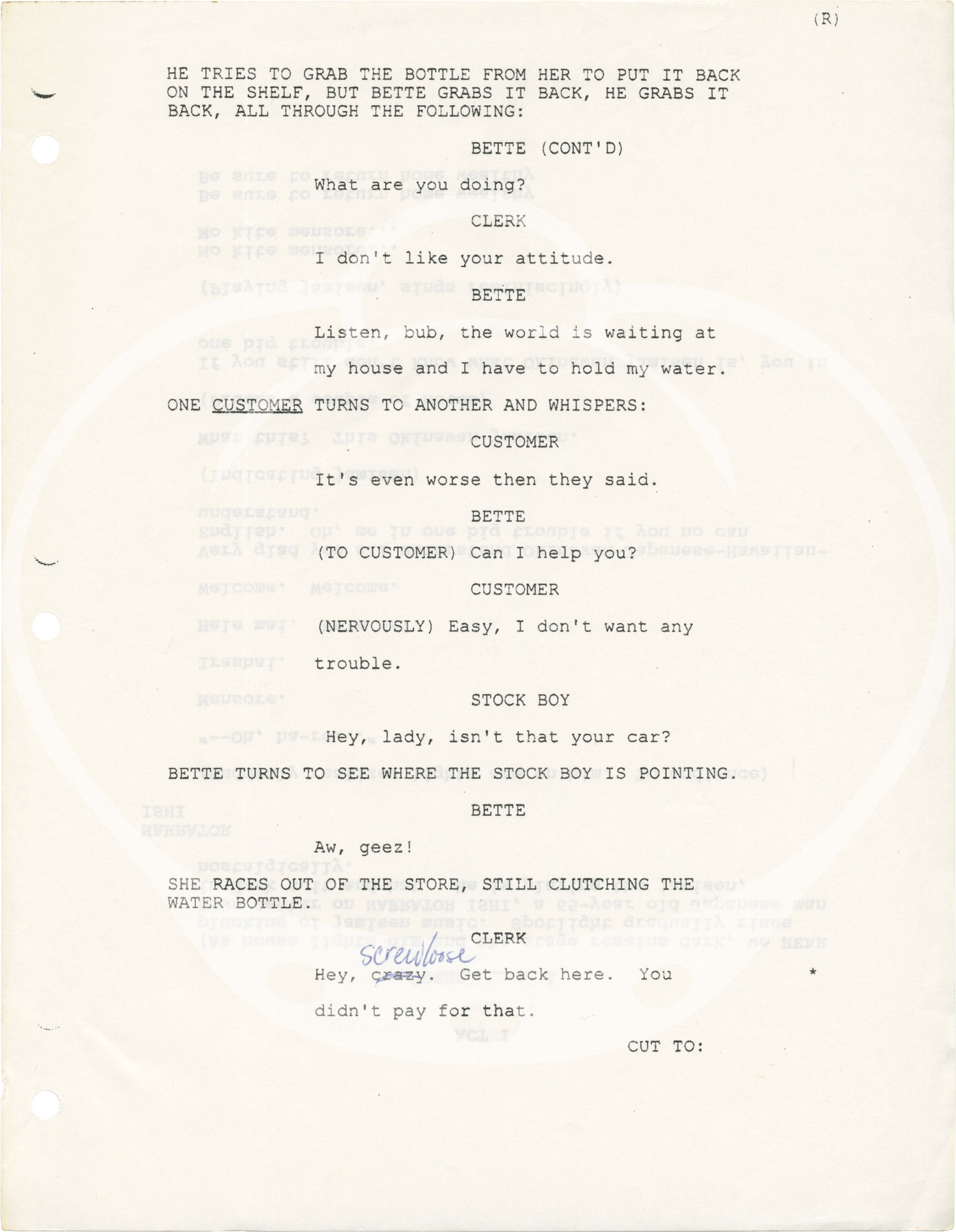 Los Angeles: Columbia Broadcasting System [CBS], 2000. Final Draft script for the tenth episode of season one of the 2000-2001 television series, which originally aired on December 20, 2000 on CBS. Copy belonging to actor Benjamin Lum, with three callsheets, dated November 3 and 4, 2000, and two xerographically duplicated revision pages laid in. INSCRIBED by actress Bette Midler to Lum on the title page: "For Benjamin— / with aloha / Bette Midler."