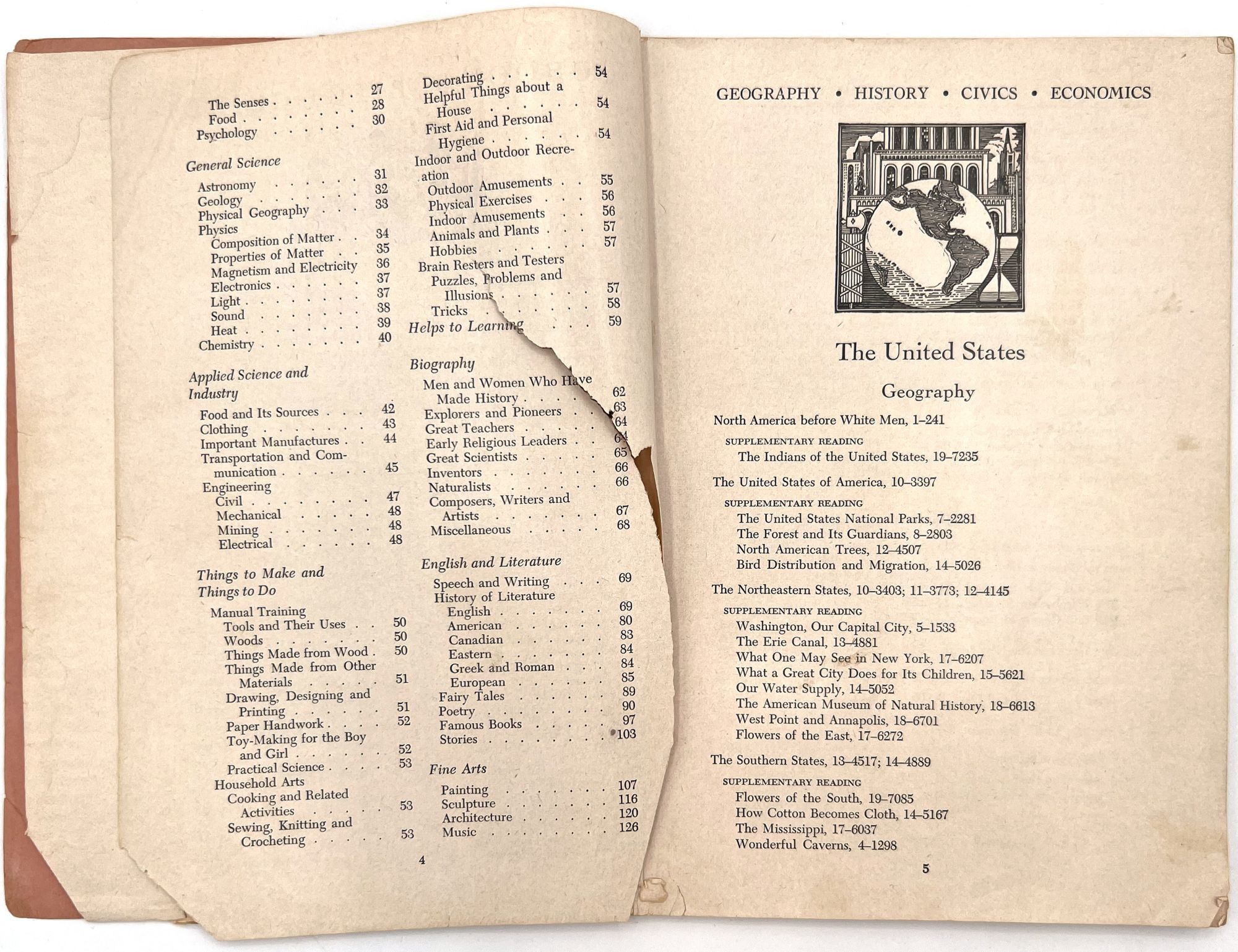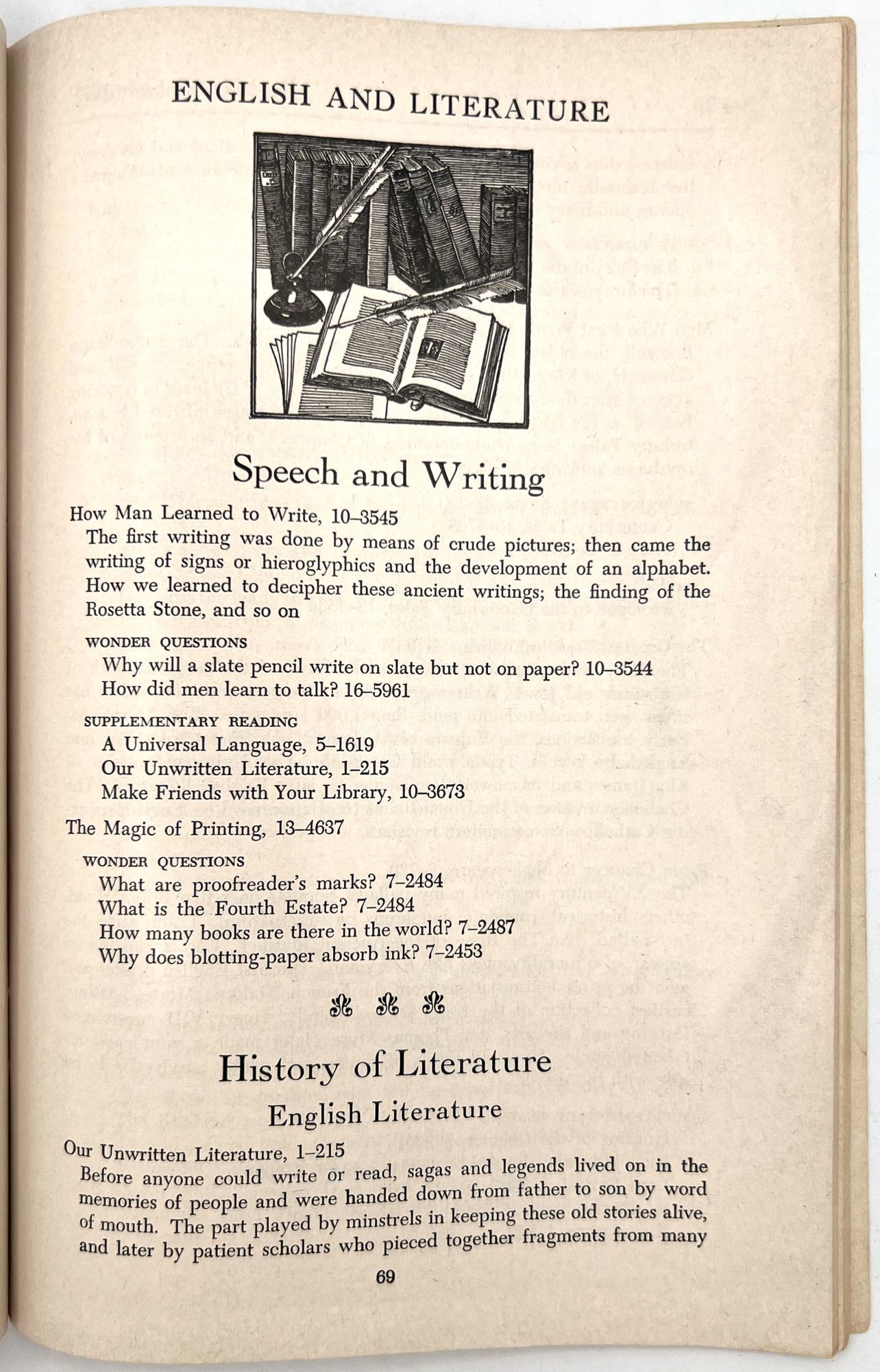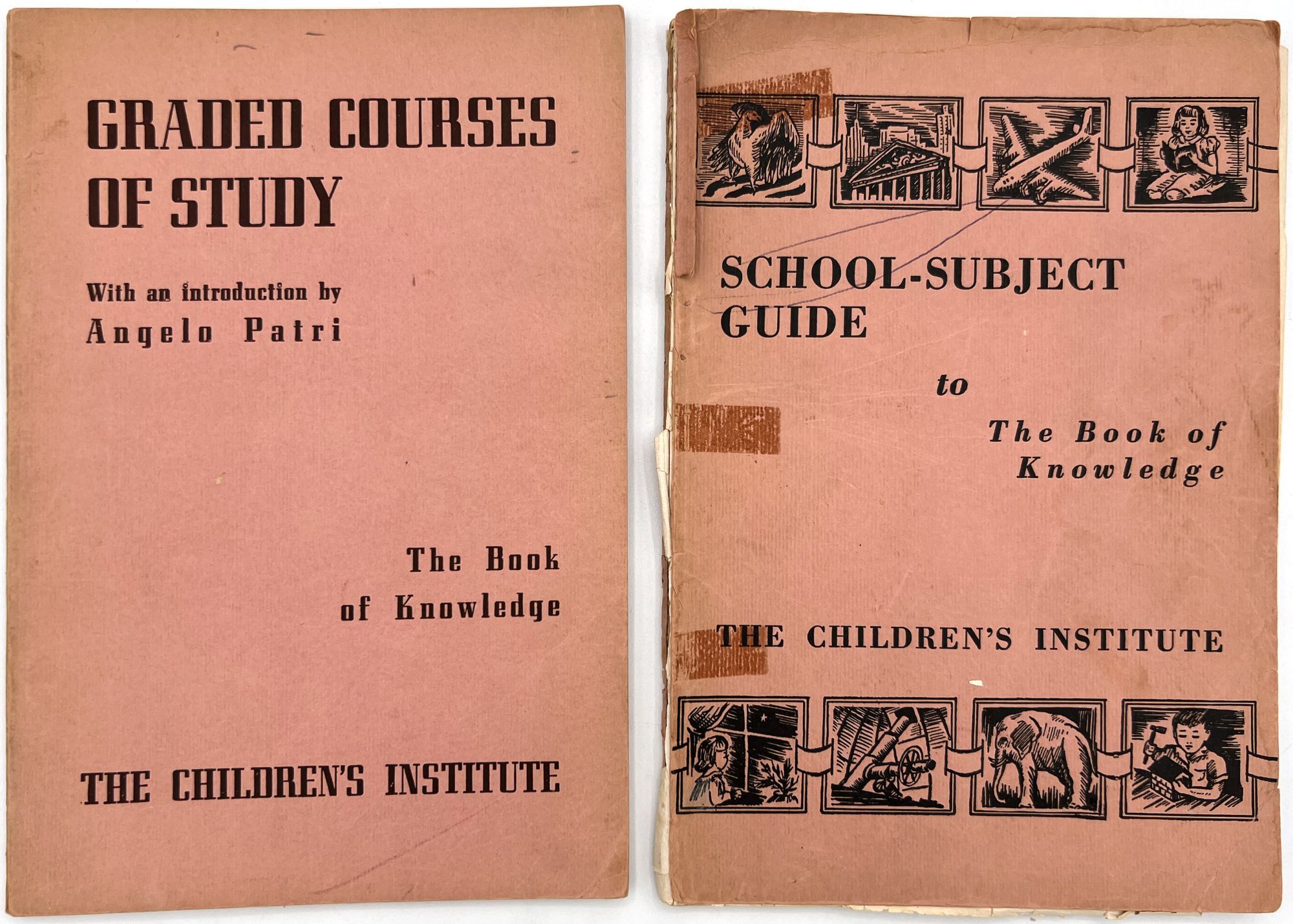 "Graded Courses of Study: The Book of Knowledge". New York: The Grolier Society, c.1954. Single vol. (9.5" by 6.5"), pp. 124, original printed salmon pink wrps.
