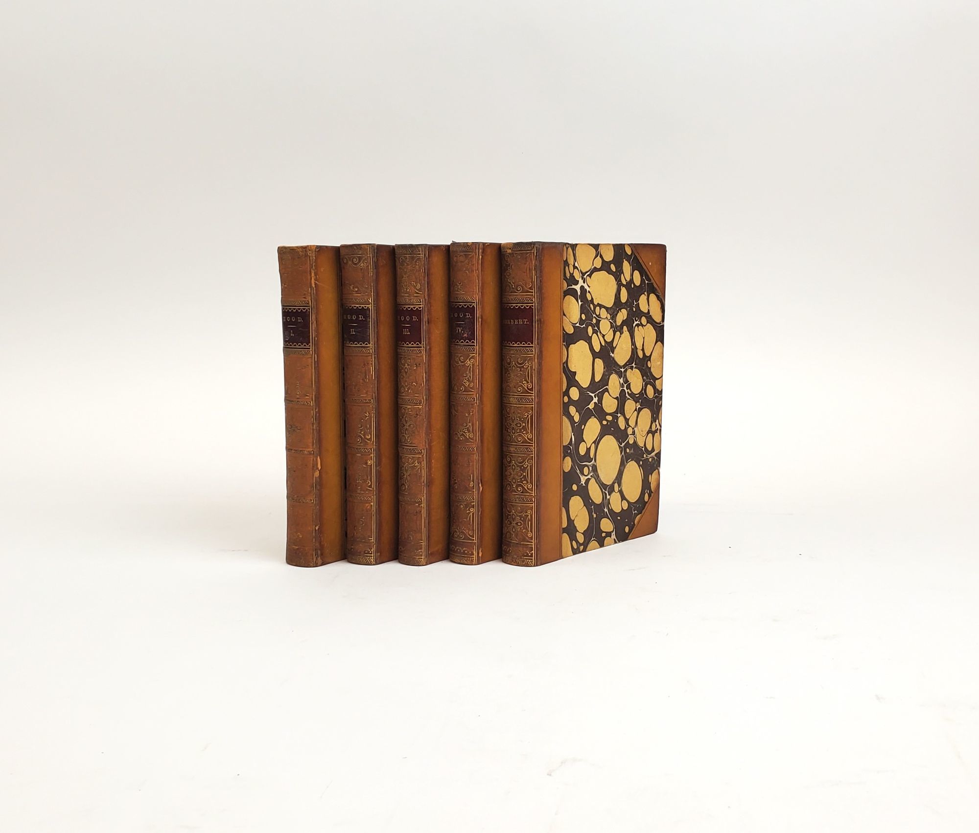 Boston: Little, Brown and Company, 1854. First U.S. Edition Thus. Hardcover. 12mo., 128 volumes. In Good plus condition. Half bound in brown leather with marbled paper boards, red band on the spine with gilded lettering and patterns. Page edges have marbled design. Boards have shelf wear and some rubbing and denting to the edges, with minor chipping to edges, and bumping to corners. End papers are marbled. Each volume has a small stamp with the name "C. H. George" on front end papers. Text block has age-toning and minor foxing. Some volumes have folding or denting to the edges of the pages. Volume 3 of "The Poetical Works of Thomas Hood" has an uncut page in the back. Volume 1 of "The Poetical Works of Lord Byron" has pencil writing on one of the first end papers. NOTE: Shelved Rockville Floor, Aisle 10, top shelf towards end on right-hand side, three boxes plus on small display box. -DS