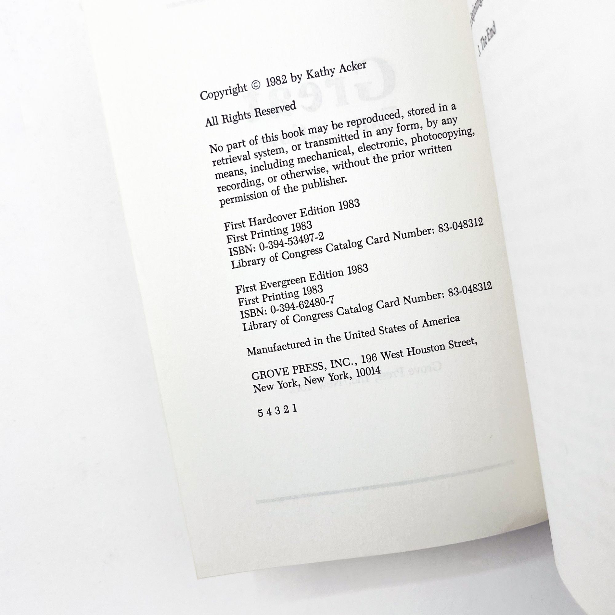 New York: Grove Press, 1983. First printing. Fine in a fine jacket.. First edition of Acker's rewriting and reinterpretation of Charles Dickens's famed coming-of-age novel. Told with Acker's typical sense of experimentation, appropriation, and brutal honesty. Oddly uncommon and a beautiful copy. 8'' x 5''. Publisher's quarter black cloth over black boards. In original unclipped ($14.95) color pictorial jacket designed by Roy Colmer after art by Sue Coe. 128 pages. Bright and sharp overall.