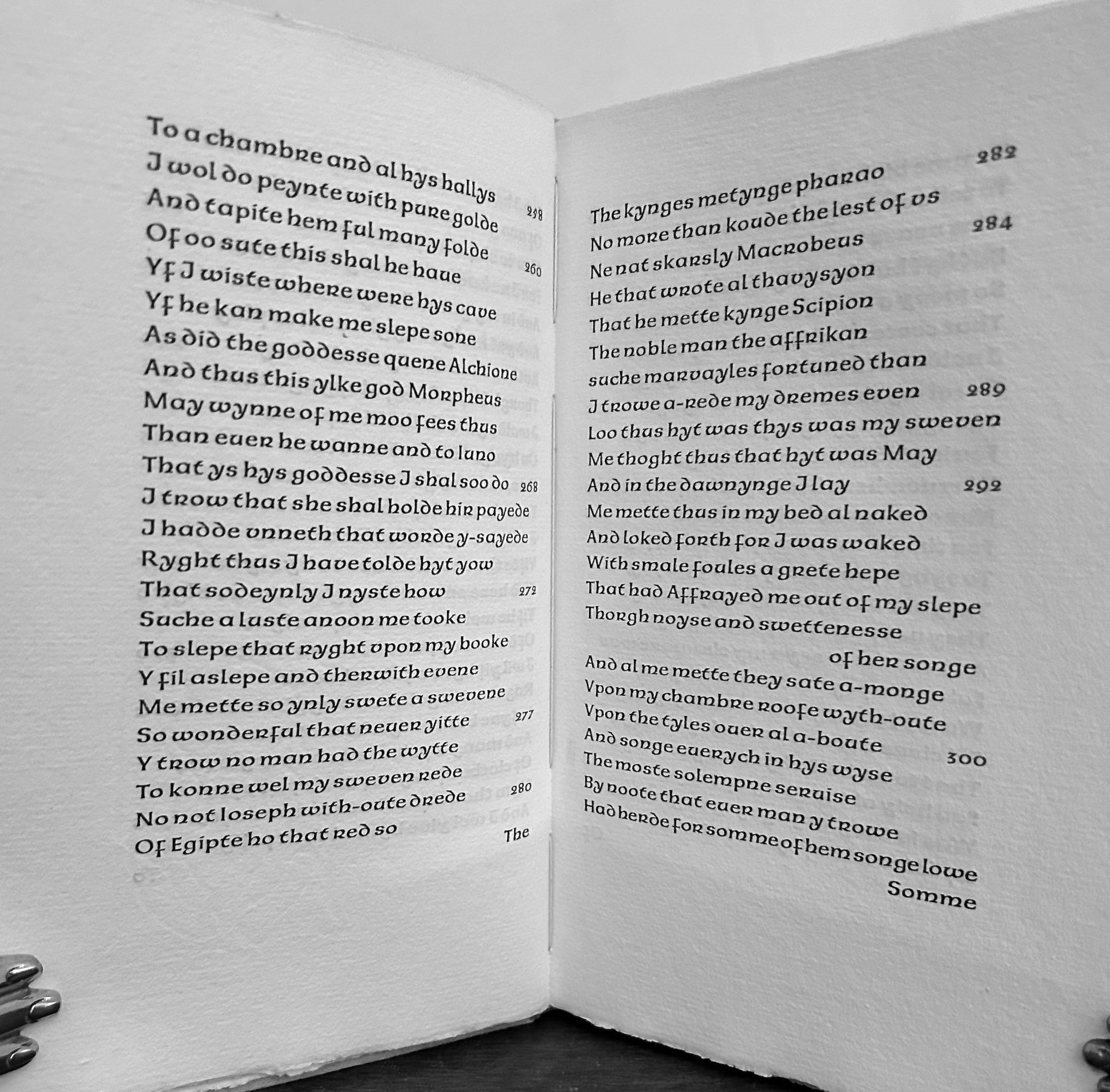 Lexington, Ky: Anvil Press, 1954. Hardcover. Publisher plain cream boards with spine paper label printed in red. Fine. Unpaginated. 20.5 x 13.5 cm. Limited edition, copy 73 of 225 with text of the Chaucer Society First Series edited by F.J. Fournival from the manuscript in the Bodleian Library. Partly unopened. Jacob Hammer set the type in period English. Title page printed in red and black. Bright, very fresh copy.