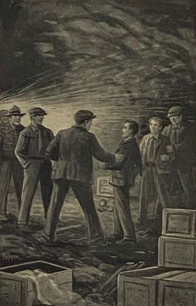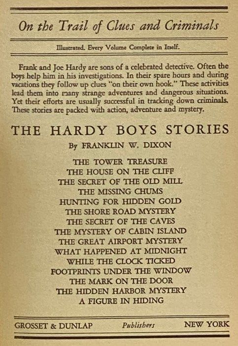 New York: Grosset & Dunlap, 1928. Reprint. Hard Cover. Very Good/Good. 0x0x0. Rogers, Walter S. Carpentieri 1937B-16. Very good in good jacket. Fore edge bumped causing 1 inch internal tear to jacket, top jacket edge lightly stained, jacket edges rubbed, pencil gift note dated 1938 on front flyleaf. 1928 Hard Cover. iv, 212, [2] pp. Brown boards, dark brown titles, orange Gretta endpapers. #6 in the Hardy Boys series. Red cloth with black-bordered brown titles on front board, black titles on spine, blank endpapers. "When the Hardy Boys eagerly agree to assist their friend Jack Dodd and his father in locating a family treasure, the two young detectives are unaware of the baffling complications that will arise. Deadly road traps, aerial ambush, a spider man and a suspect who carries a menacing cane harass the young detectives as they seek the triple solution to this perplexing and exciting mystery.