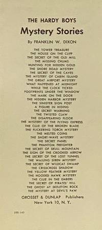 New York: Grosset & Dunlap, 1959. First Edition. Hard Cover. Good/Good. 7x5x1. First edition, second state (Carpentieri 1959A-2). Very good in good jacket. Jacket edges a bit rubbed, 1/2 inch chip from jacket spine head, two ink names on jacket verso - one crossed out, stain on rear board. 183 pp. 8vo. #38 in The Hardy Boys Mystery series. When Frank and Joe Hardy receive a telegram from Tony Prito in Alaska telling them that his life is in jeopardy, they immediately make plans to fly to Tony's rescue. Unknown enemies dog the Hardys and their pal Chet Morton even before they start the 4,000 mile journey. Puzzling questions lead the Hardys into dangerous sleuthing in the wilderness of Alaska and British Columbia. The astounding secret that the young detectives uncover, in the shadow of the forbidding mountain peak Devil's Paw, winds up one of the most perilous adventures they have ever encountered.