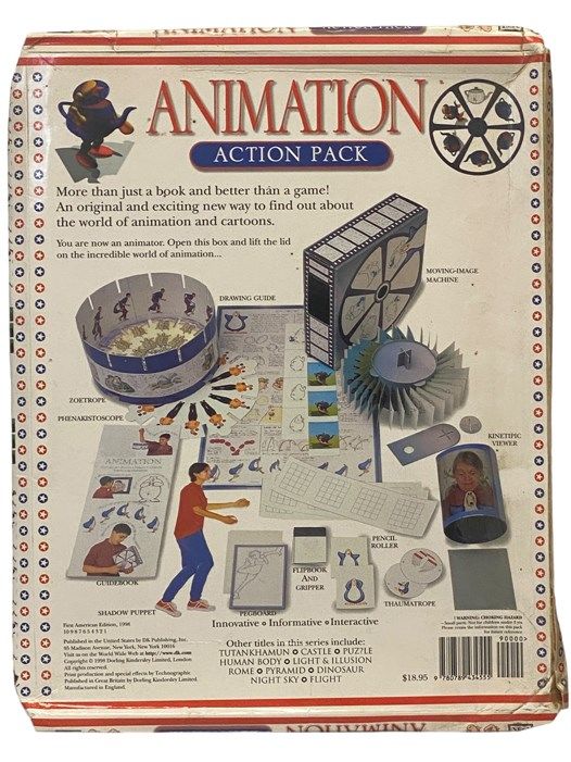 Animation Action Pack: A Hands-On Guide to the Amazing World of Moving Pictures -- Includes Drawing Guide, Moving-Image Machine, Zoetrope, Phenakistoscope, Kinetipic Viewer, Pencil Roller, Flipbook and Gripper, Thaumatrope, Pegboard, and Guidebook
