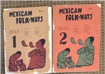 México: Mexican Folkways, 1933. (Covers partially detached and/or worn; some with chipping on edges of wrappers). b/w plates, mus. nots., pict. wrps. ENGLISH AND SPANISH TEXT. One of the most famous art periodicals ever produced in Mexico. Diego Rivera was the artistic director and executed all of the cover designs.