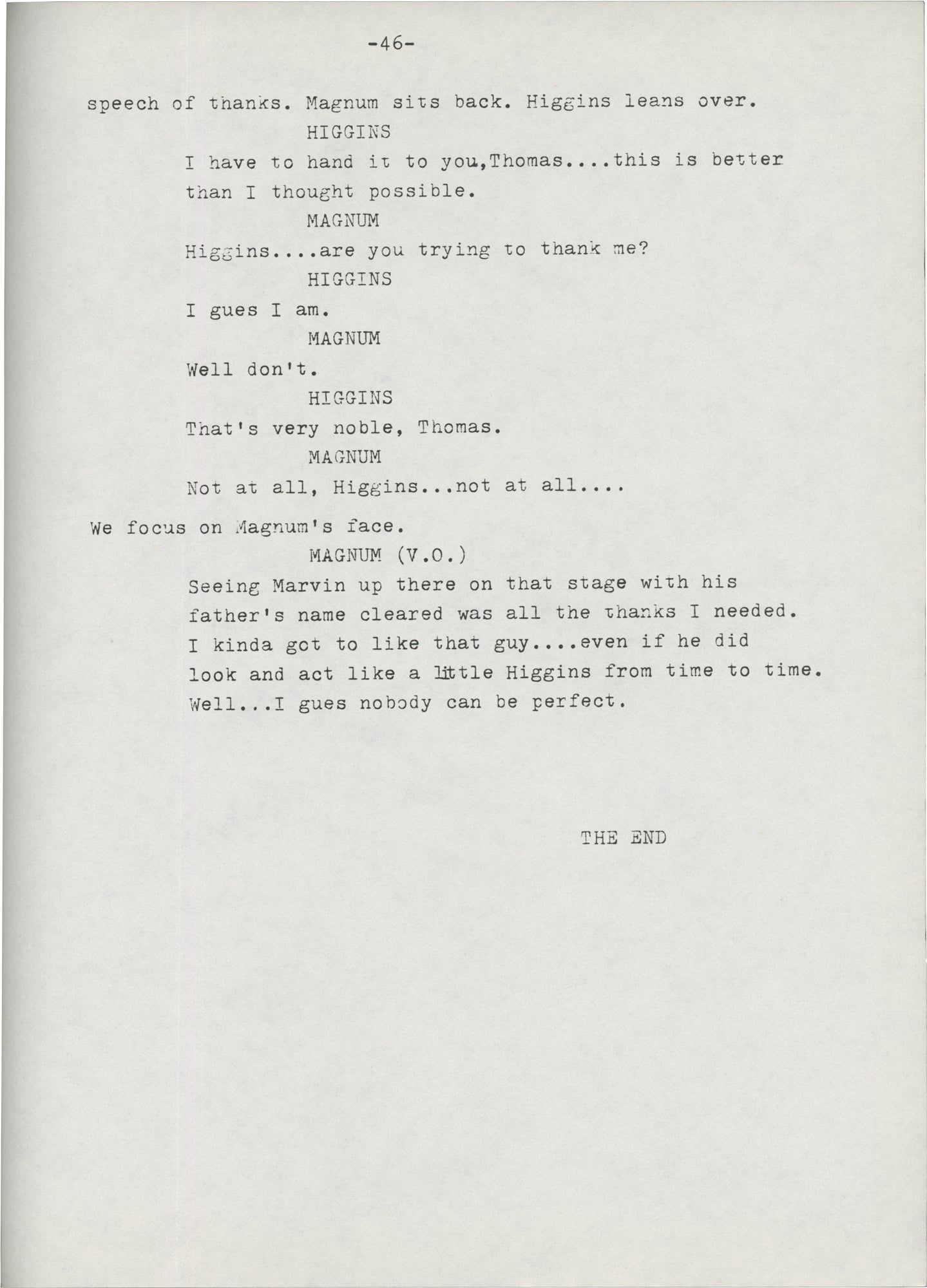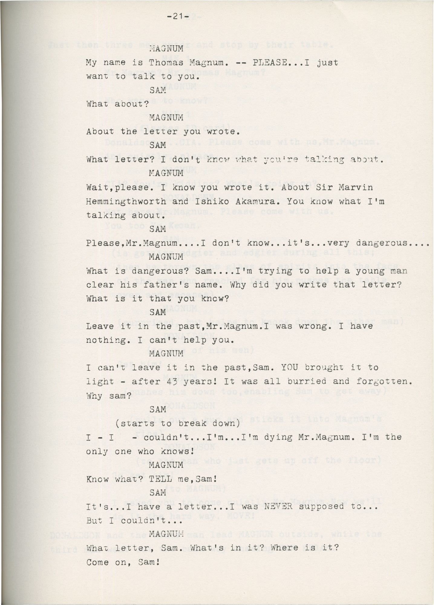 N.p.: N.p., 1984. Draft script for an apparently unproduced episode of "Magnum P.I."