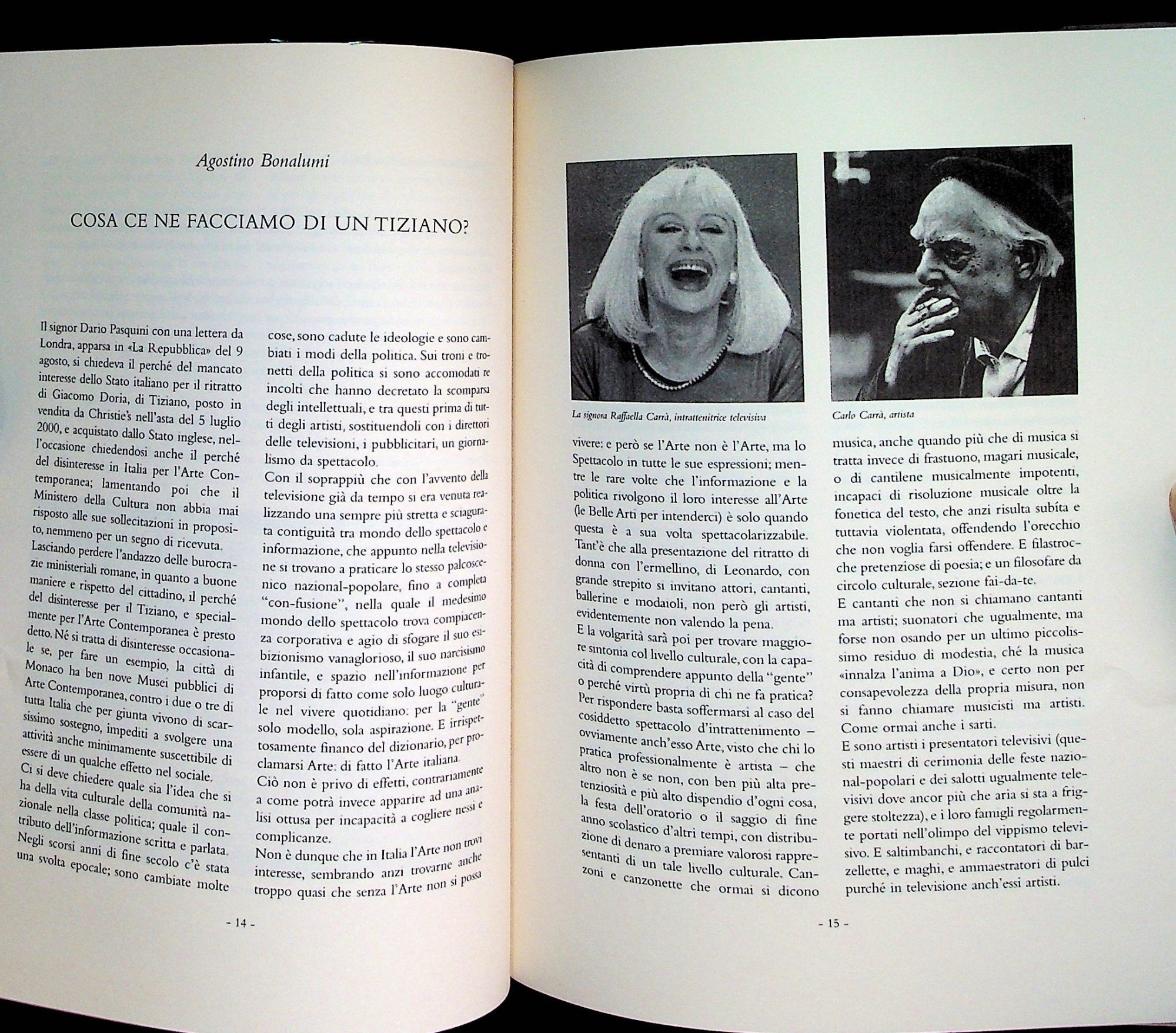 Belluno, Italy: Proposte d'Arte Colophon, Belluno, 2000. Softcover. Very Good. Softcover. [IN ITALIAN] This is a limited edition publication. This is copy #300. Includes articles by Sandro Parmiggiani about the books of Riccardo Licata; by Agostino Bonalumi about What do we do with a Titian?; and 7 other articles. Black and white photographs and plates throughout text. Quarto. Cream colored paper wrappers with title in gray to front cover and spine. Pages are bright and clean. 45 pages, plus additional unnumbered plate. Scarce. BOB/022124.