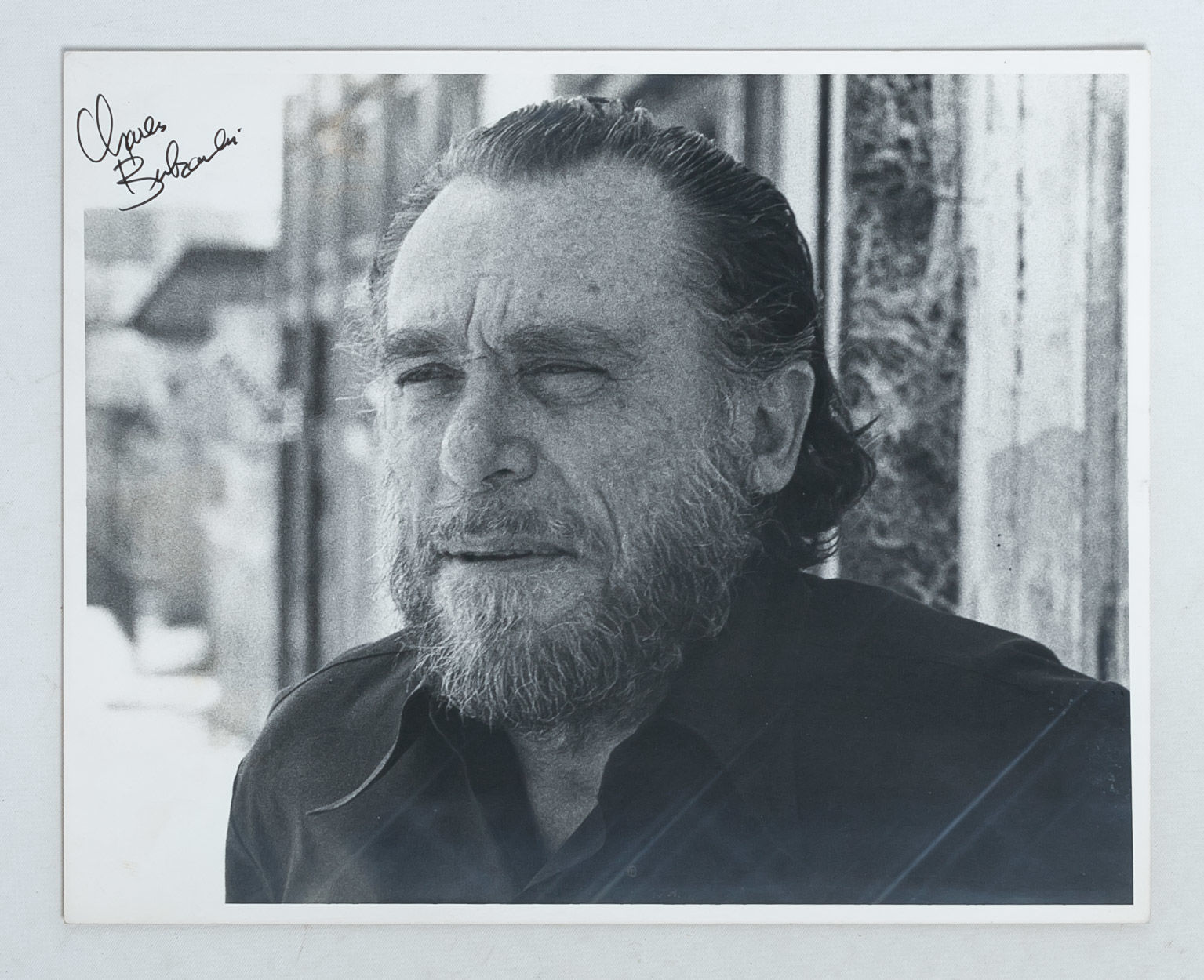 n.d.. Fine. Large original print on 8 x 10 kodak paper, signed by Bukowski. Assumed to be by Richard Robinson from his series of portraits of the author during the 1970s, although without artist signature or markings.