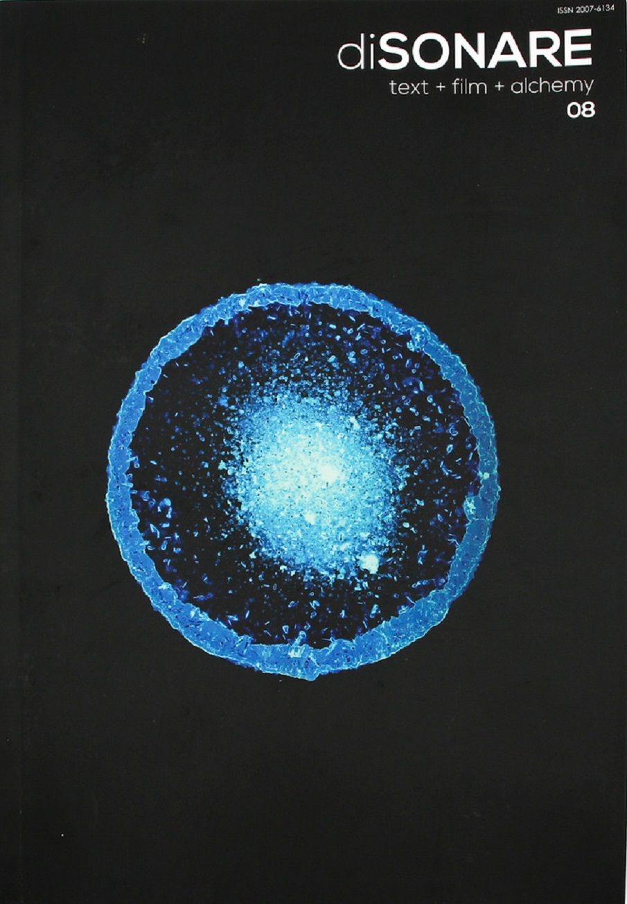 Mexico, D.F.: Batallas de la Era Común, 2019. b/w and color plates, diags., color pict. wrps., ISSN: 2007-6134. diSONARE is born out of the concept of dissonance, referencing the complexities that feed art & writing in their diverse genres and practices. We are an experimental editorial platform from Mexico City focusing on hybrid art processes in the intersection between poetry and art, as well as translations, fiction and criticism. An independent project run by a small editorial group, we publish an annual bilingual journal, organize readings and performances in Mexico and abroad, and develop various projects related to sound, performance, independent publishing, radio and activism. Founded in 2013 by Diego Gerard, Lucía Hinojosa and Rodrigo Quintero, diSONARE is interested in building cross-cultural collaborations and promoting alternative ways of thinking about publishing as an experimental catalyst. diSONARE 08 explores the relationship between text & the moving image and the continual interplay of their mediums, materiality, and narratives. Our editorial lens focuses and blurs the phenomenological, cultural and ideological tensions that appear in the alchemical skin of cinematic images, leaving textual residues, unfinished processes and other forms of poetics. --The editors. Participants include: Federico Pérez Villoro, Andrea Ancira, Neil Mauricio Andrade, Adriana Melchor Betancourt, Lucía Meliá Maestro, Fabiola Torres-Alzaga, Ricardo Nicolayevsky, Isabel Sonderéguer, Daniel Monroy Cuevas, Mara Fortes, Rodrigo Quintero, Zazil Alaíde Collins, Alfonso Santiago, Sofía Garfias, Rosa Barba, Kaitlyn A. Kramer, Carolee Schneemann, Caroline Bergvall, Patrick Farmer, Morten Slettemeas, Michel Auder, Anne Waldman, No Land, Jonas Mekas, Vyt Bakaitis, Jeannie Moser, Christina Vagt, Sarah Ancelle Schönfeld, Chloe Zimmerman, Paul Becker, Nadia Hebson, Susan Hiller, Christopher Rey Pérez, Lorena Tabares, Francisca Benítez, Katherine E. Bash, Joe Banks, Joseph Reiter. ENGLISH AND SPANISH TEXTS. CONTENTS: Otra imagen del pasado / Federico Pérez villoro -- Editorial = Editorial note -- Sight enables us to appreciate distance / Rosa Barba -- Indicios sobre cine táctil / Andrea Ancira & Neil Mauricio Andrade -- He wrote me / Katlyn A. Ktamer -- Fuses / Carolee Schneemann -- Fuses (after Carolee Schneemann) / Caroline Bergvall -- Orcilla / Patrick Former -- Hivskninger og rop 01/HeR#3/HeR#3 / Morten Siettemeas -- Cine letrista: una aproximación / Mariana Melchor Betancurt -- My first pipe od opium sin 1972 / Michel Auder -- Questions for citizens = Preguntas para ciudadanos / Anne Waldman & No Land -- Transmutation, Cosmos, Psyche: A Cartography / Jeannie Moser and Christina Vagt -- Bajo la anestesia de caballo, Ricardo Nicolayevsky. Poems & Film Stills / Ricardo Nicoloyevsky.
