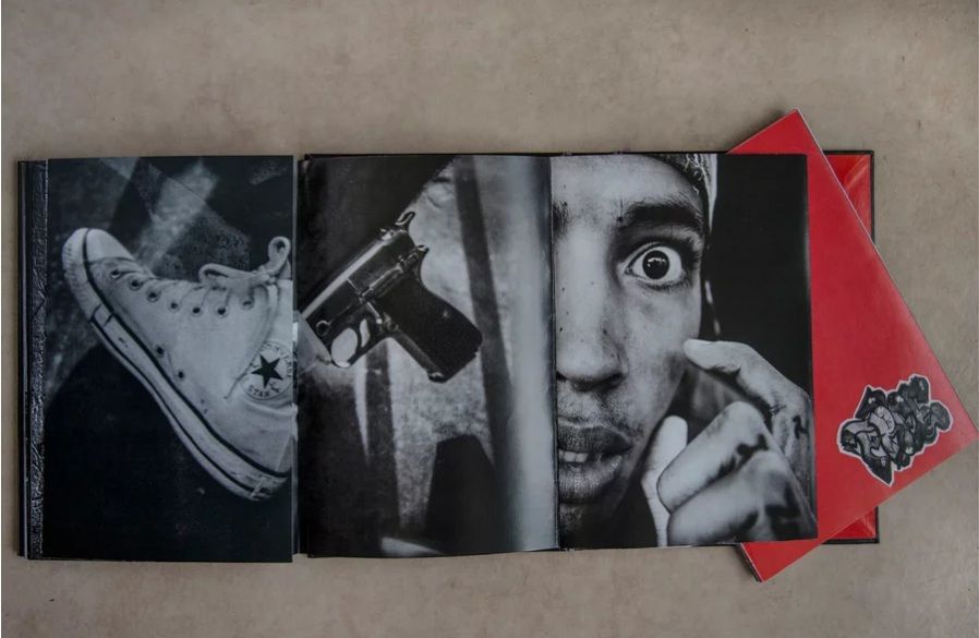 Manizales, Colombia: Raya Editorial, 2022. b/w and some color plates One and Four Color printing. Book 1* (CONVICT ) Bristol 125gr paper. (210p); Book 2* (FREE ) Eco Paper of 90gr. (110 p). Convict attached at rear cover to slip case, plus b/w plates (20 p inserted in front cover; plus b/w and color plates and text, red pict. wrps japanese binding, loose as issued; All together in fldg. case with illustrations on verso. The photobook Free Convict – those who know by Oscar B. Castillo, is a work on imprisonment and the Venezuelan prison system, it has also been on the roots, causes and consequences of the cycle of violence that has devoured the country in recent years. It has been, and still is, about Hip Hop and youth, about education, inclusion, and culture. Through photography, documents, interventions, collages and collaborative work this book aims to interconnect the dots of childhood, adolescence, education, exclusion, family, the mirage of power and aggressive masculinity and the reality of fast death or hard work for self-redemption. And how these young men living in a system that sees them as a lost cause, and with all the odds against, built and developed their own plan for reinsertion to freedom from incarceration. "The Free Convict Hip Hop Collective and their journey from incarceration to freedom in Venezuela." --Artist's website. Awards: Paris Photo-Aperture Foundation PhotoBook Awards. 2022 First PhotoBook Shortlist. ENGLISH AND SPANISH TEXTS. LIMITED EDITION OF 500.