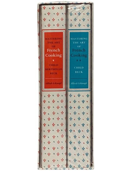 New York: Alfred A. Knopf, 2009. Reissue. Hard Cover. Fine/Fine. 7x3x10. Still in original plastic wrap. 2009 Hard Cover. Complete in two hardcover volumes. xv, [1], 684, xxxii, [2]; xxi, [1], 555, [1], lxiii, [5] pp. 8vo. These books established Julia Child as an important culinary author, and led to a career owing to which she is known as one of the most influential chefs in American history. The first, originally released in 1961, features a broad survey of techniques and recipes, while the second volume, released 9 years later, more completely covers certain topics discussed in the first book. "Volume One contains 524 recipes for the savory delights of French cuisine, from historic Gallic masterpieces to the seemingly artless perfection of a dish of spring-green peas. Volume Two presents a brilliant selection of 257 additional recipes that not only add to the home cook's repertoire but, above all, bring them to a new level of mastery. Taken together, these two books are a stunning feat of cookbook literature, and Julia Child's most beloved works.