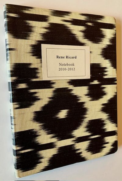 London: Morel. Decorative Boards. Fine. An immaculate copy of this posthumous publication, out of London, of Rene Ricard's "Notebook 2010-2012". Clean and Fine in its decorative silk boards, limited to 300 copies. From the Introduction: "Here we have a rare insight into Rene's working process with drawings, drafts of poems, finished poems, witty remarks and memories. Rene wrote this notebook as a work in itself therefore the decision to keep it as a facsimile." Another reflection at the Introduction by Raymond Foye, Rene's editor in the brilliant "Hanuman Books" series. Published circa 2013-2014.