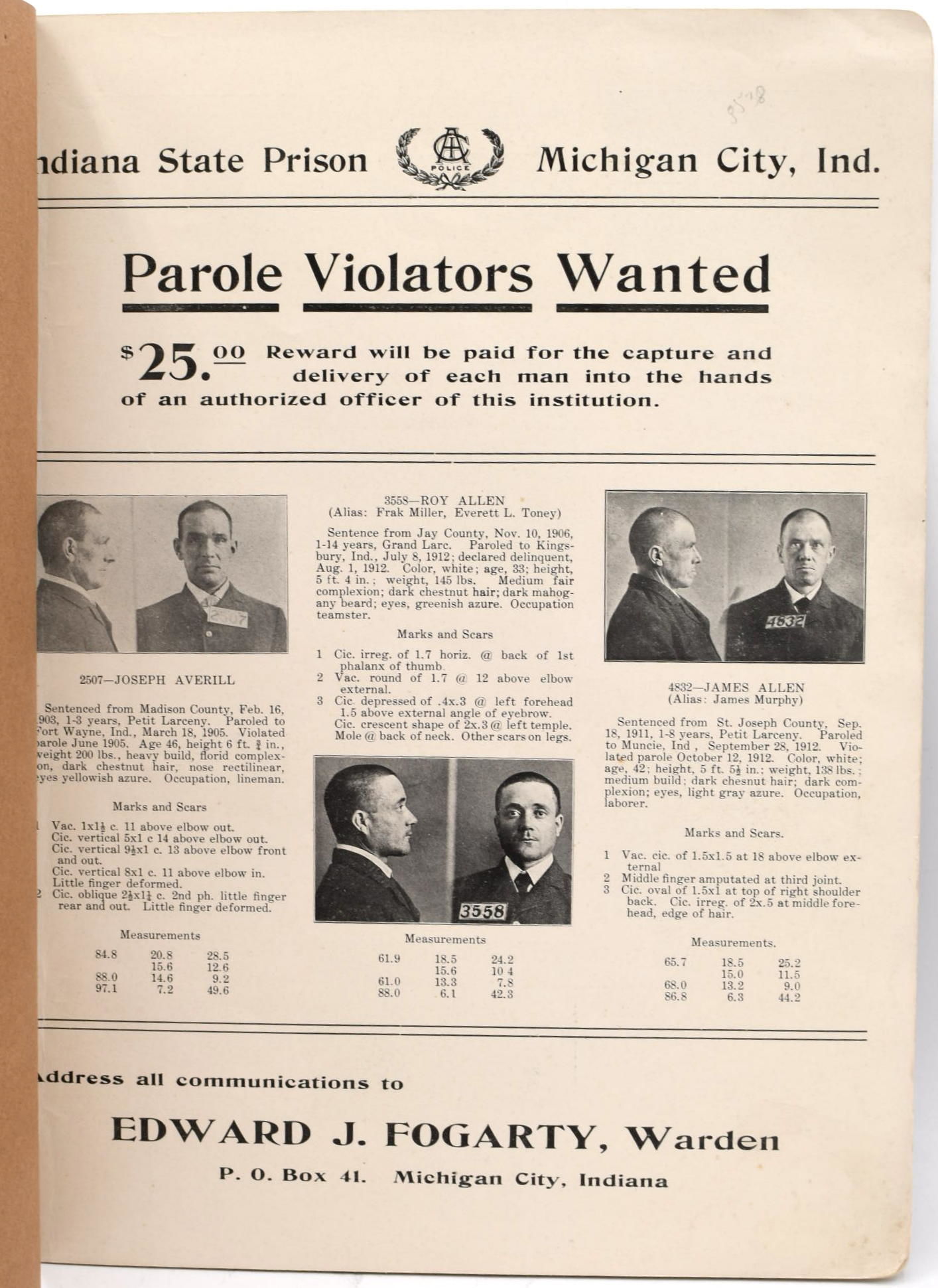 [AMERICANA] PAROLE VIOLATORS WANTED. INDIANA STATE PRISON. MICHIGAN CITY, INDIANA