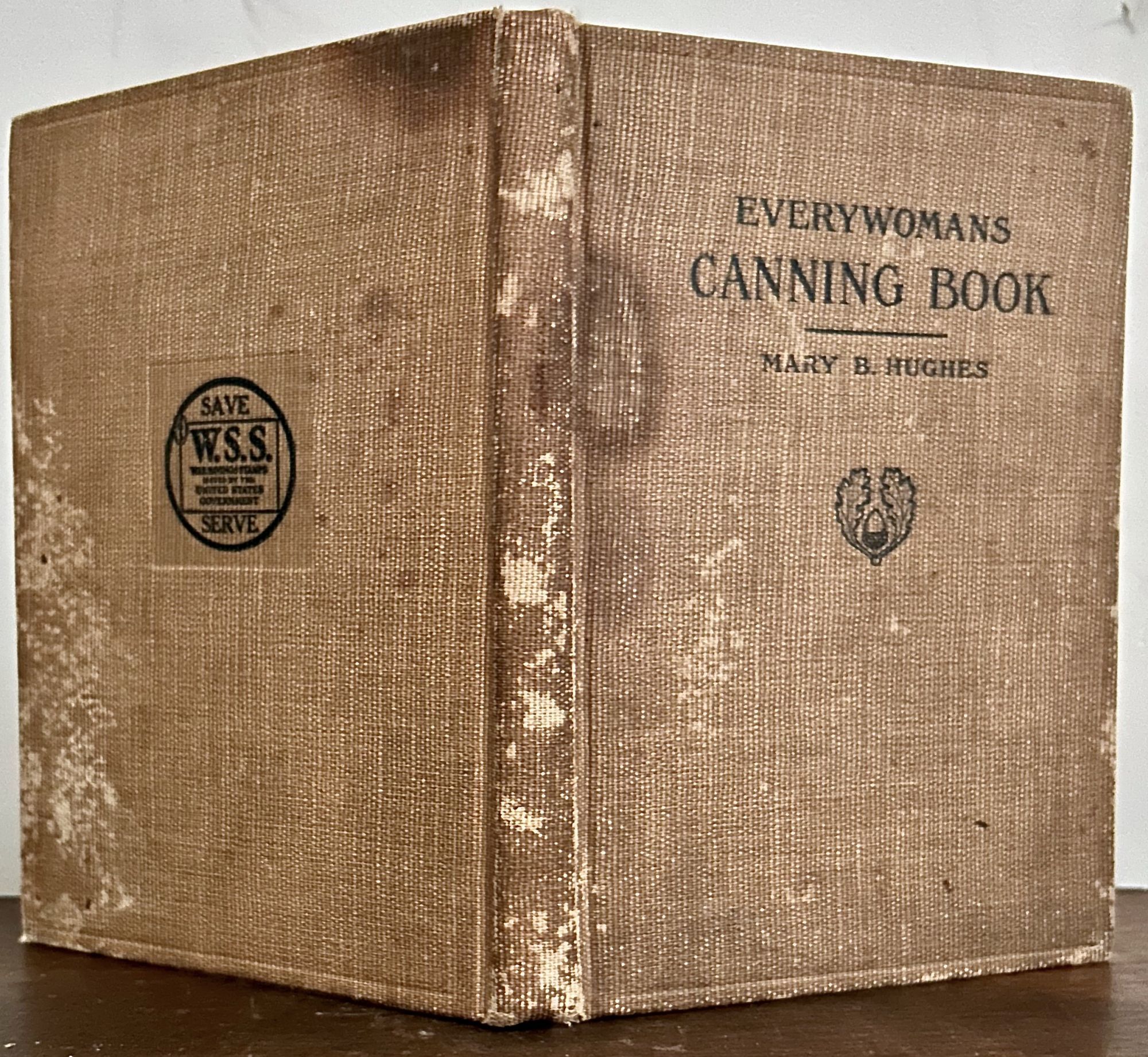 Boston: Whitcomb & Barrows, 1918. Second printing. Hardcover. Orig. light brown cloth lettered front and back, spine and back cover abraded, Very good. 96 pages. 20 x 14 cm. Index. Work was produced "during the season 0f 1917, in the Food Conservation Drive for War Relief at Mrs. Hemenway's Canning Kitchen, Boston." Back cover stamped "War Saving Stamps issued by the United States Government.