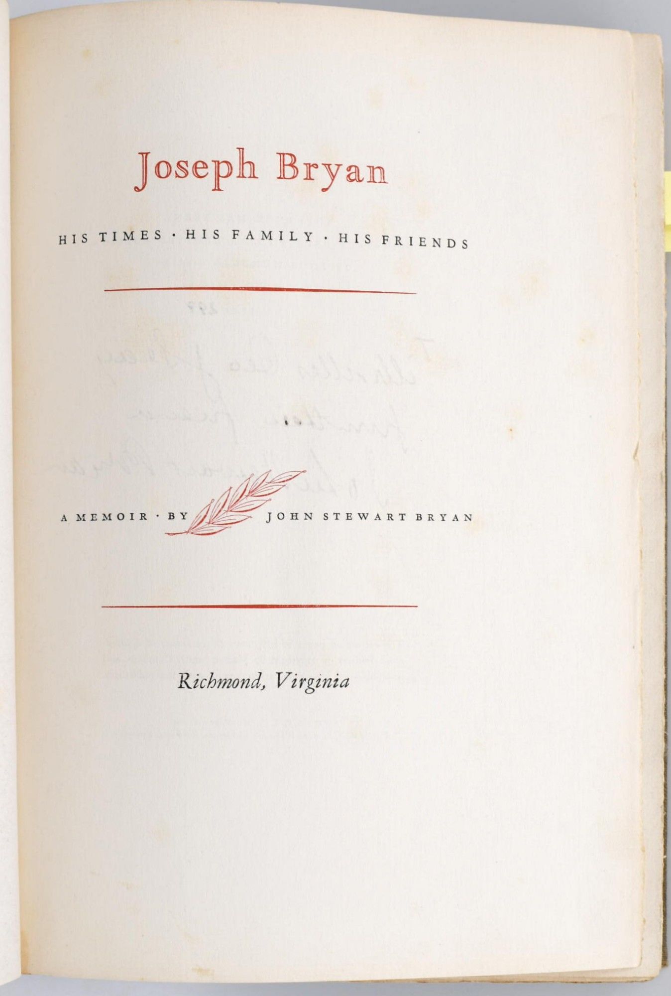 [SIGNED] [VIRGINIA] JOSEPH BRYAN: HIS TIMES, HIS FAMILY, HIS FRIENDS