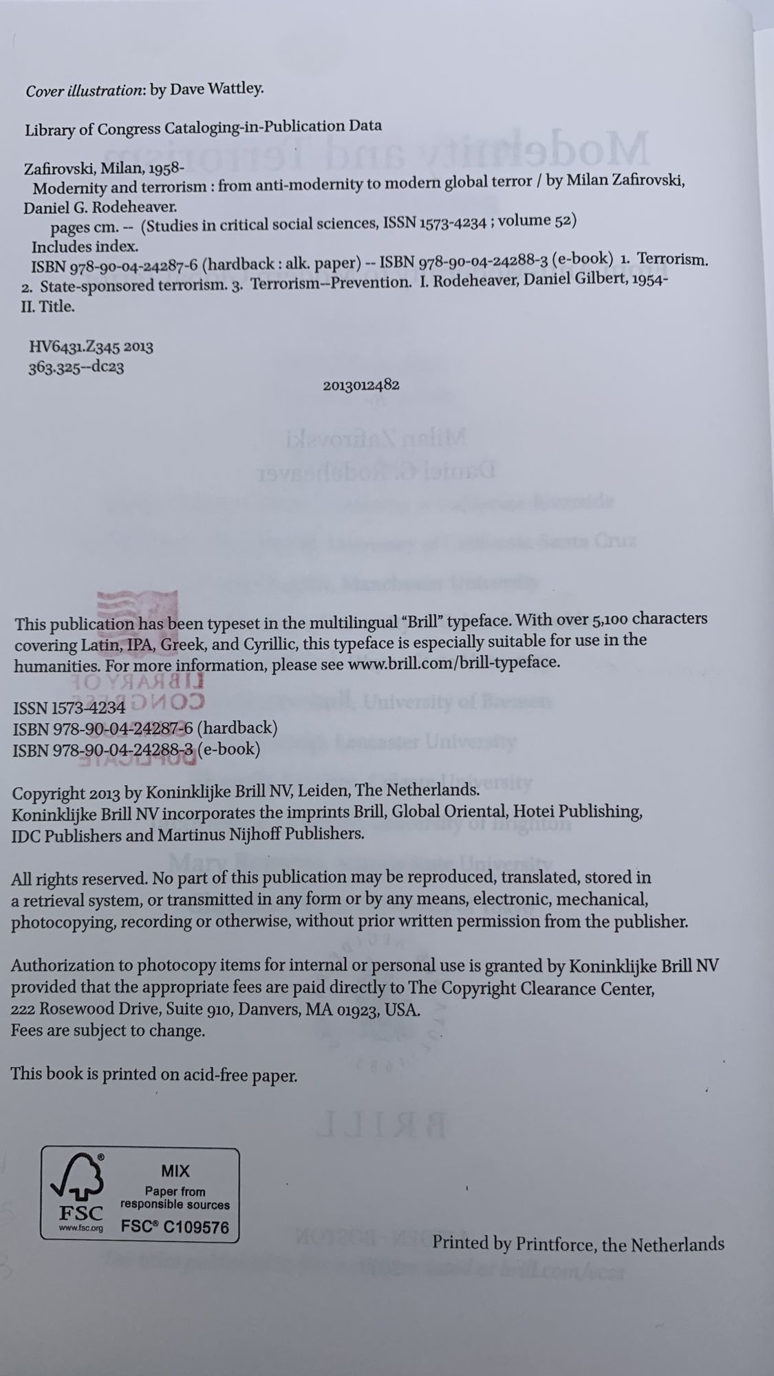MODERNITY AND TERRORISM : FROM ANTI-MODERNITY TO MODERN GLOBAL TERROR (STUDIES IN CRITICAL SOCIAL SCIENCES, 1573-4234 ; VOLUME 52)