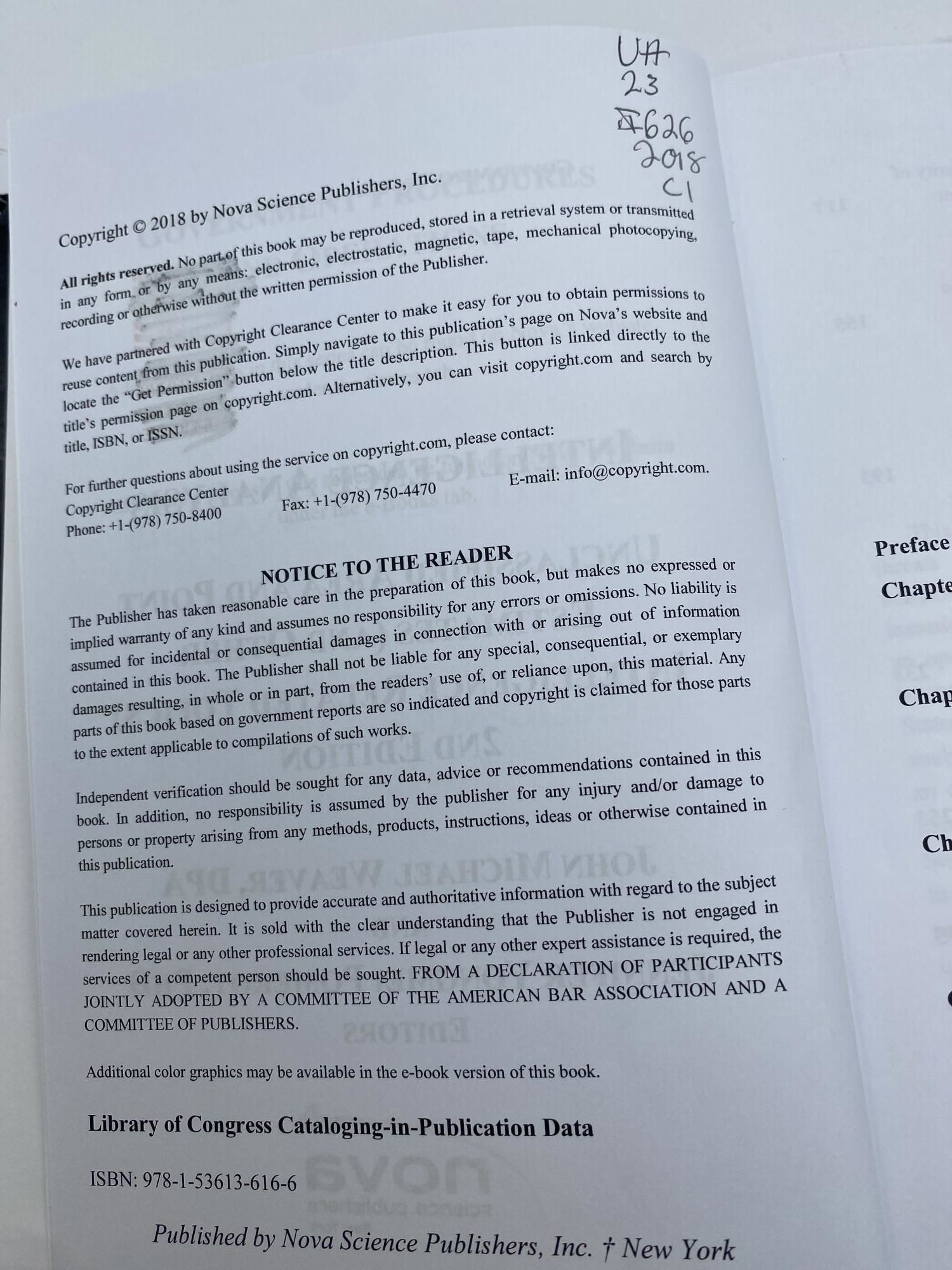 New York: Nova Science Publishers, 2018. Second edition. Hardcover. Octavo, vi, 330 pages. In Good condition. Ex-library with usual markings, including library stamp on top edge and title page (inked out), blank label on rear pastedown, barcode label on rear board. Spine is black with white print. Boards in glossy illustrated paper. Light wear to spine caps and corners. Illustrated: b&w tables, charts. Note: Shelved in Locked Annex Area, ND-HV Section. 1377818. FP New Rockville Stock.