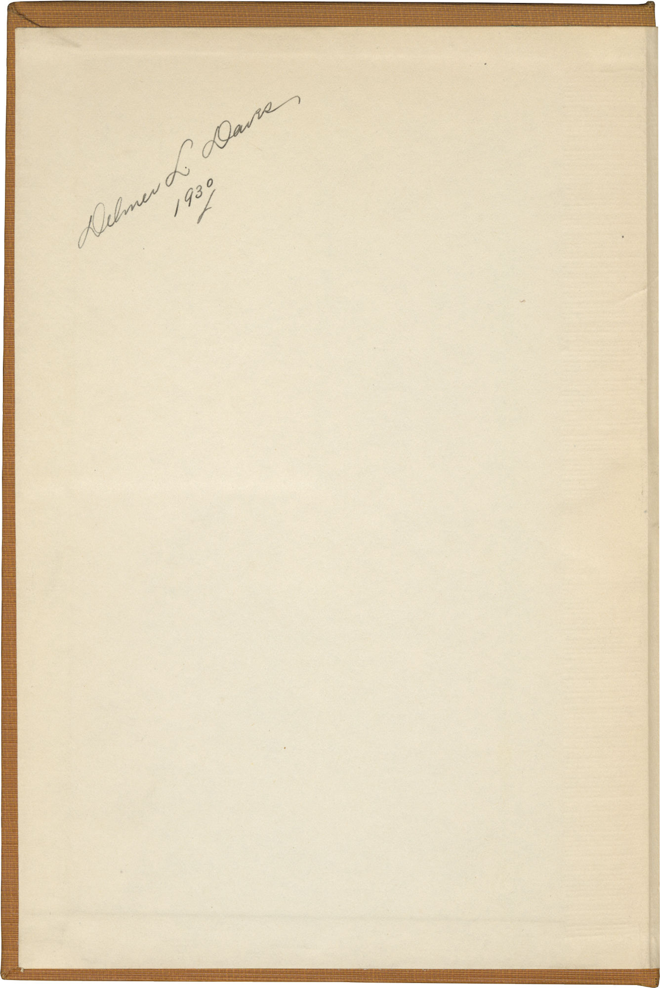 New York: Horace Liveright, 1929. First Edition. First Edition. Copy belonging to director and screenwriter Delmer Daves, with his ownership signature and the year (1930) on the front pastedown.