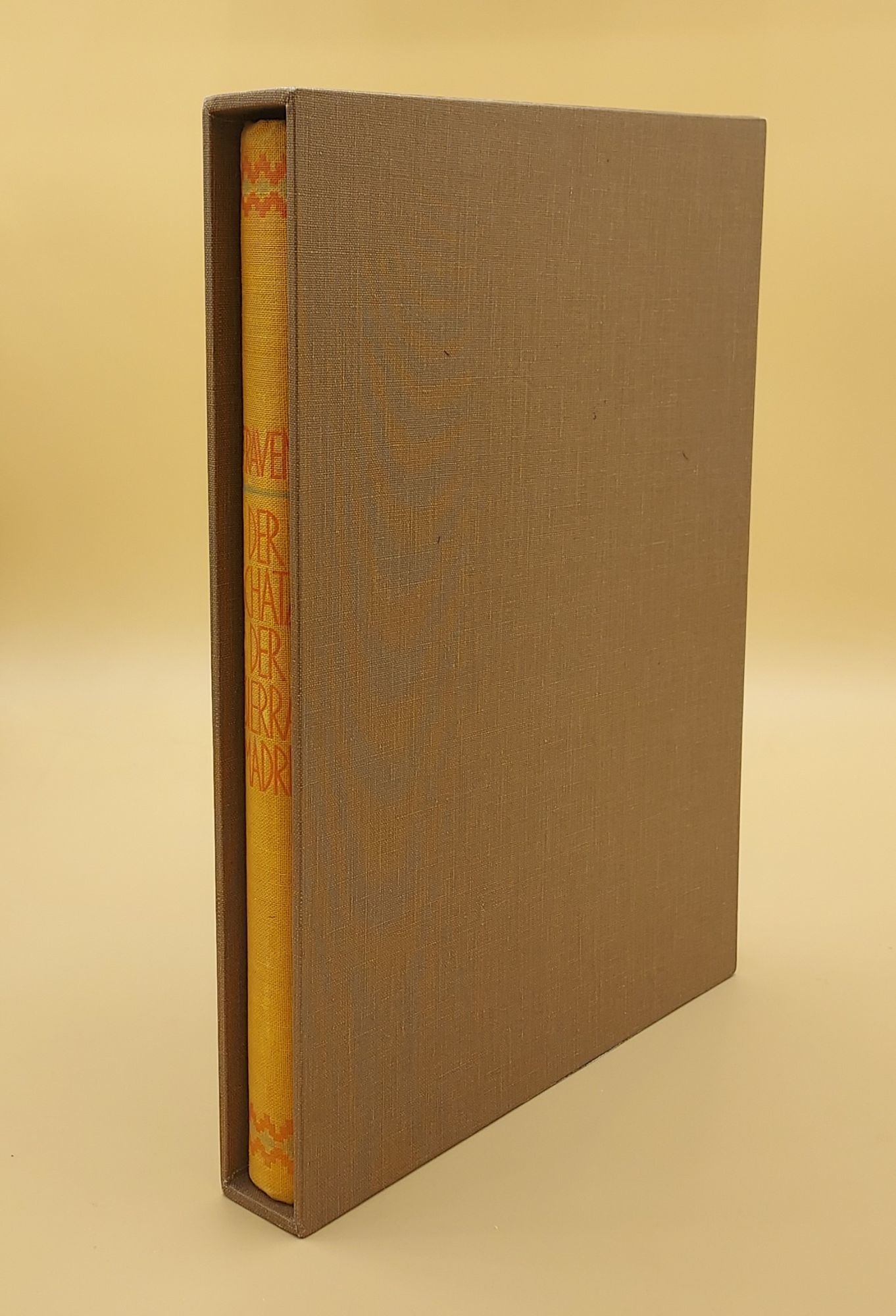 Berlin: Verlag der Buchergilde Gutenberg, 1927. First edition, 2nd state. Hardcover. Very Good. 213pp. Small quarto [24 cm] Light orange cloth covered boards with an orange ink stamped title on the spine, and dark orange and pale green decorative ink stamped designs on the spine and front cover. Publisher's green topstain. The boards are subtly soiled. The endpapers are discolored along the hinges, and just a bit along the edges. With a supplied slipcase of plain brown cloth over boards. Treverton 244, Recknagel 440, Hagemann 45, Farmer 1. The first line on page 18 does not end with "und," but ends with "badeten." B. Traven's early life is a jungle of conjecture, myth, and misdirection. Even today, with access to both the Traven archives in Mexico and the Marut archives at the University of California at Riverside, nothing is known about his childhood, his parents, or even the name he was born with." - Edward N. Treverton.