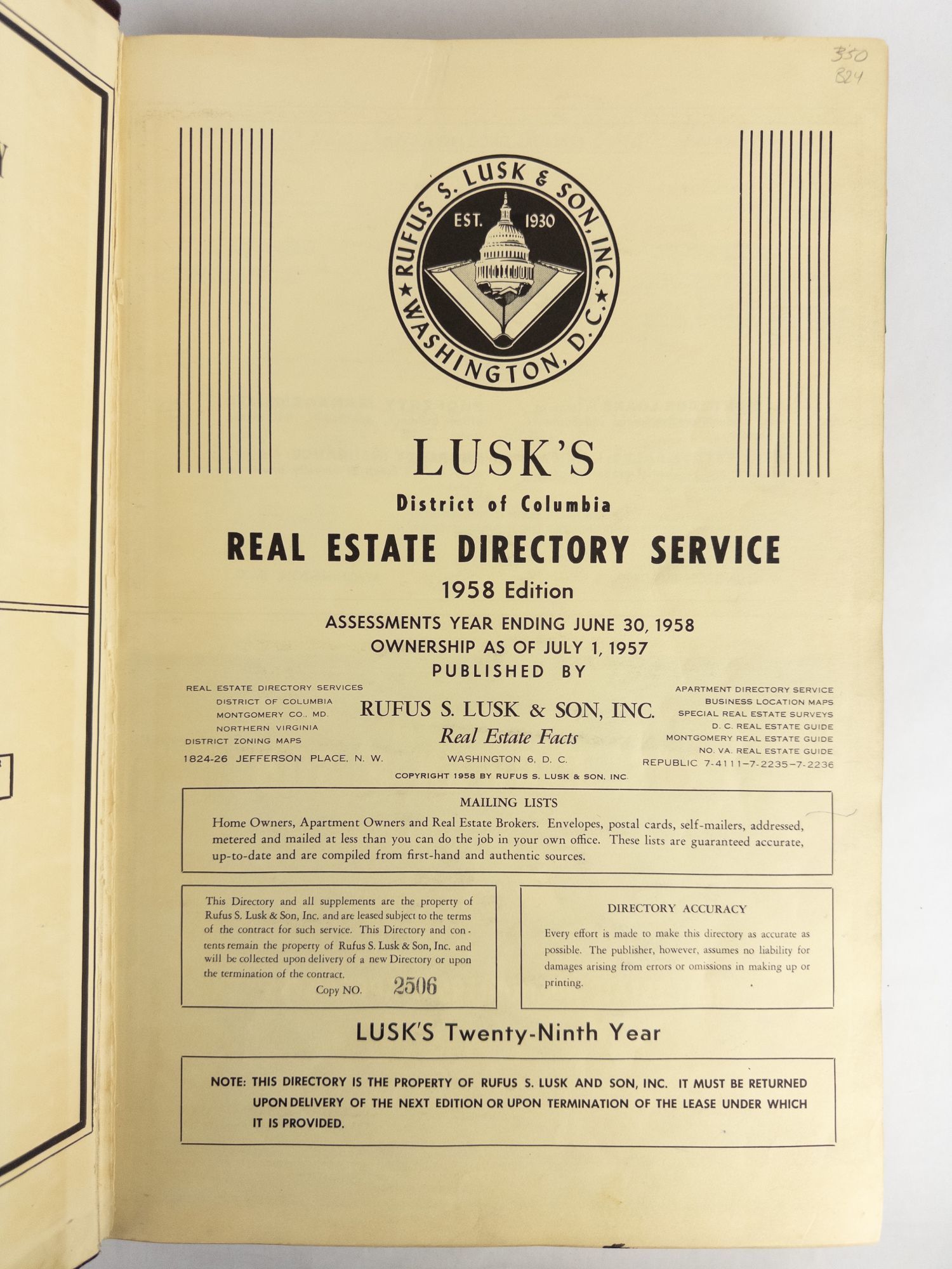 LUSK'S DISTRICT OF COLUMBIA REAL ESTATE DIRECTORY SERVICE