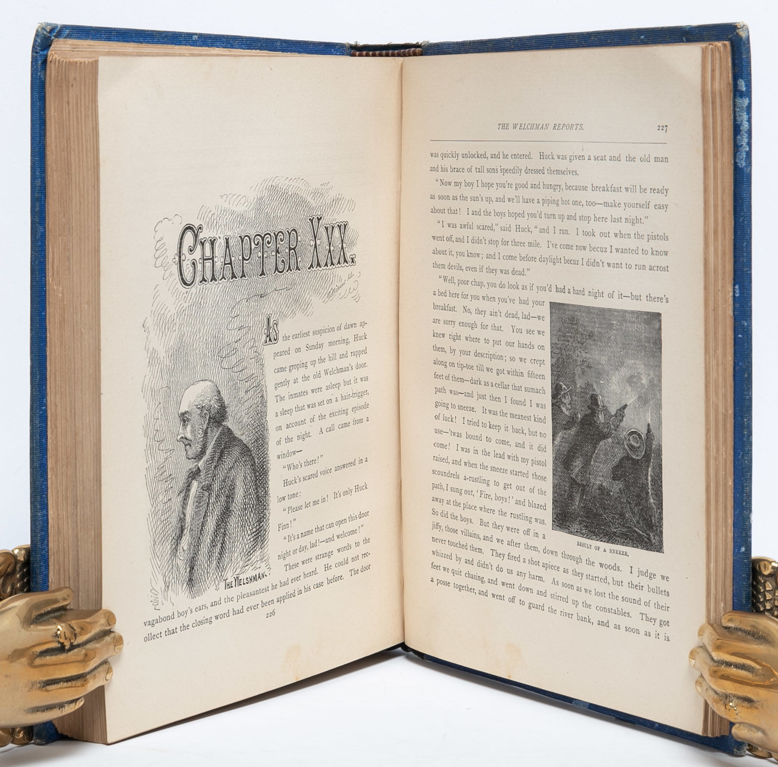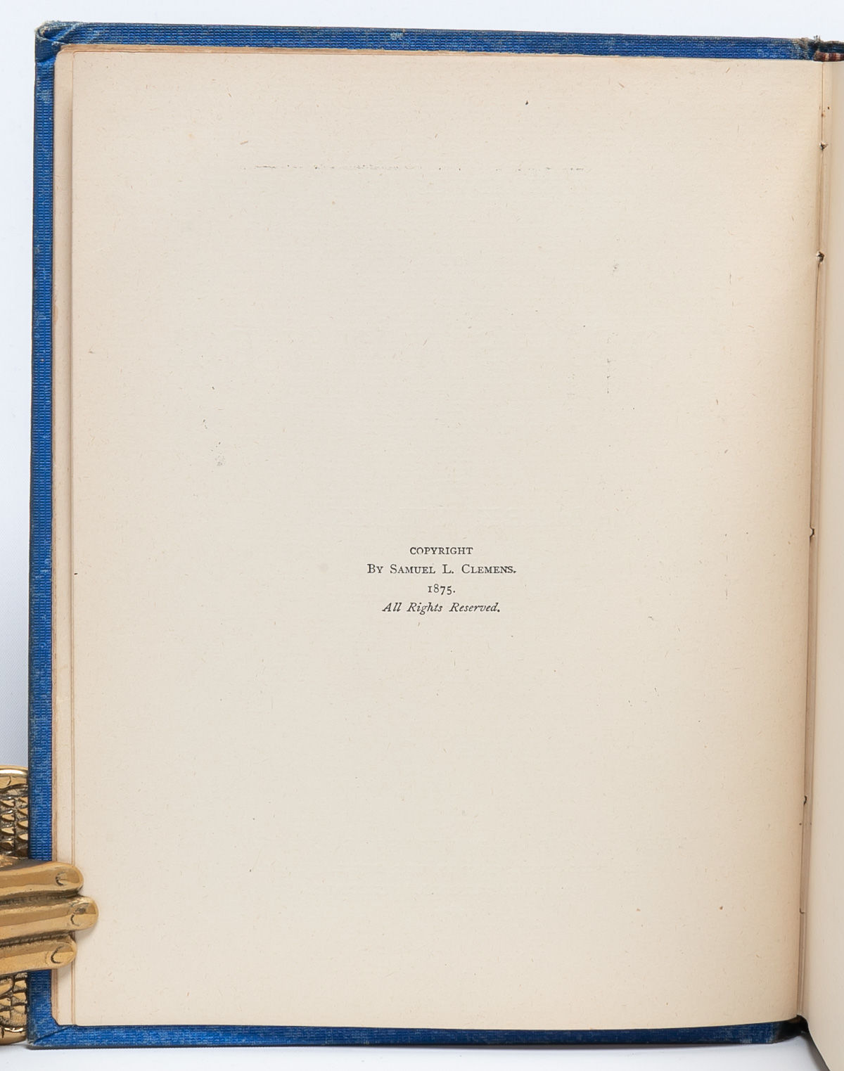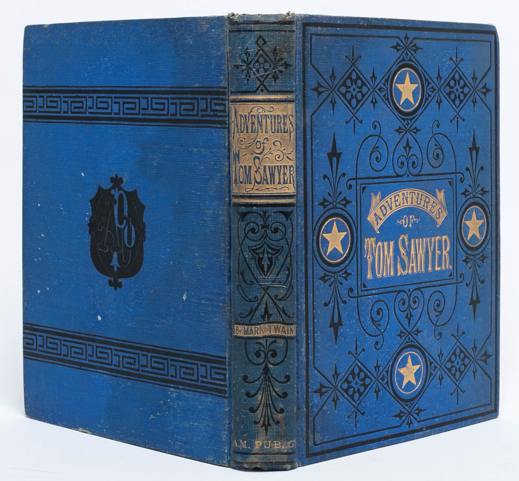Hartford, Conn: The American Publishing Company, 1876. 2nd Printing. Very Good +. Second printing. Original blue cloth, decoratively stamped and lettered in gilt and black, peach coated endpapers. Frontispiece and numerous wood-engraved text illustrations by True Williams and others, 4-page publisher's advertisements at end (dated Dec. 1, 1876), half-title printed on the verso of the frontispiece. A Very Good+ copy overall. Minor wear to the spine ends and extremities, some discoloration to the spine and the rear board. A contemporary owner's gift inscription on one of the early blanks (dated Feb. 22, 1877). Rear paste-down and endpapers a bit wrinkled, apparently from a dampstain. Text block clean and unaffected.