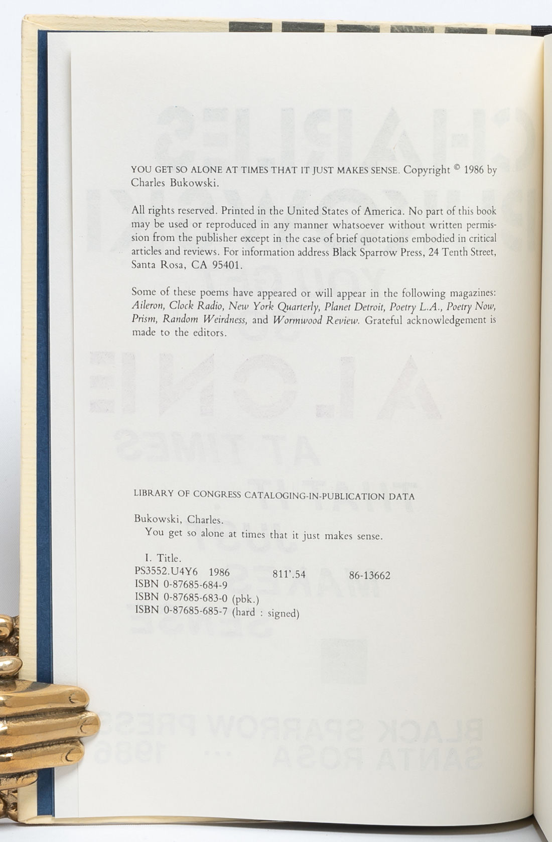 - Santa Rosa: Black Sparrow Press, 1986