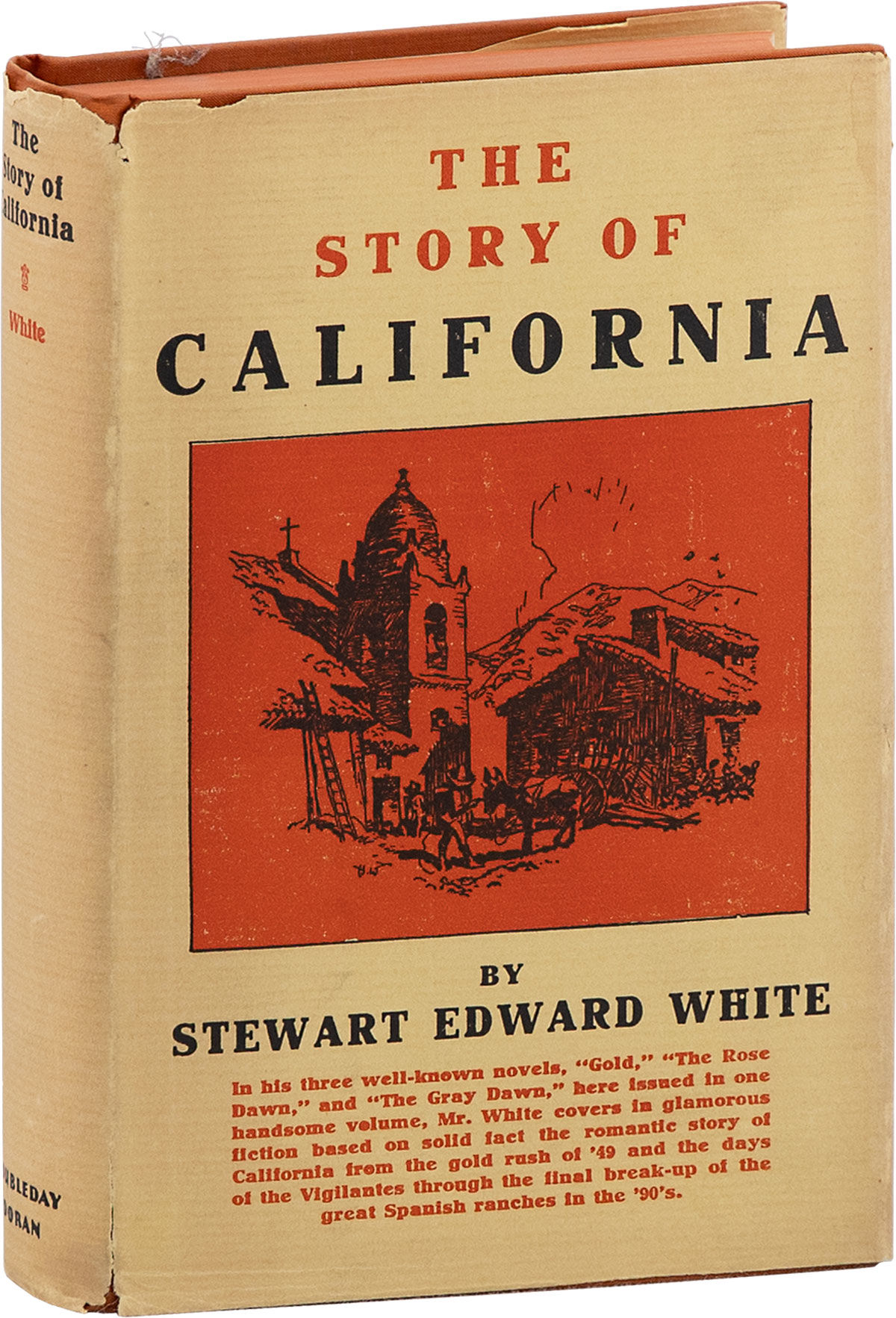 Garden City: Doubleday, Doran & Company, 1935. Octavo; full orange cloth with printed paper spine label; dustjacket; 437+395+369pp. Tight, straight, and clean - Near Fine; in the original pictorial dustwrapper, unclipped (priced $2.00 on front flap), very lightly rubbed with a tiny nick at crown of spine panel, Near Fine. Omnibus edition of White's three interwoven California novels: Gold (1913), The Gary Dawn (1915) and The Rose Dawn (1920). An unusually well-preserved copy.