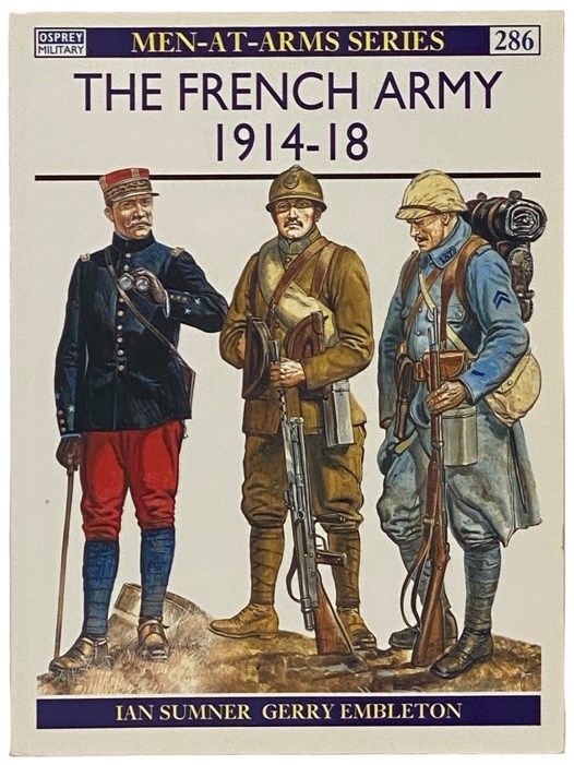 London: Osprey Publishing, 1995. First Edition. Soft Cover. Near Fine. 7x0x9. Embleton, Gerry. First edition. Related article laid in. 1995 Soft Cover. 40 pp. Initially the strongest of all the Allied armies, France's metropolitan and colonial units bore the greatest burden during the first two years of the Great War, and made a great contribution to the final victory. In common with most European countries, the pre-war French Army was based on a system of national military service providing conscripts who could be subject to recall as reservists for several years after. However, the advent of war, the crisis in manpower, and the development of new tactics and weapons brought radical changes. The influence of these factors on the organisation, equipment, uniforms and tactics of the French Army during World War I is examined in detail in this title.