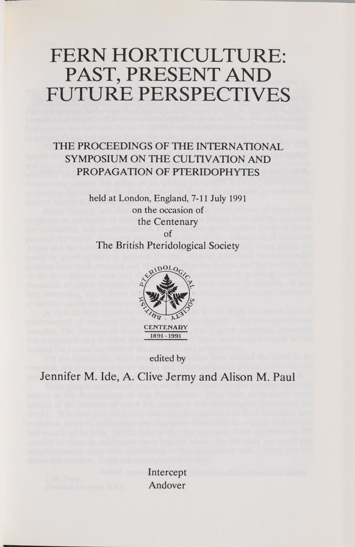 [GARDENING] FERN HORTICULTURE: PAST, PRESENT AND FUTURE PERSPECTIVES