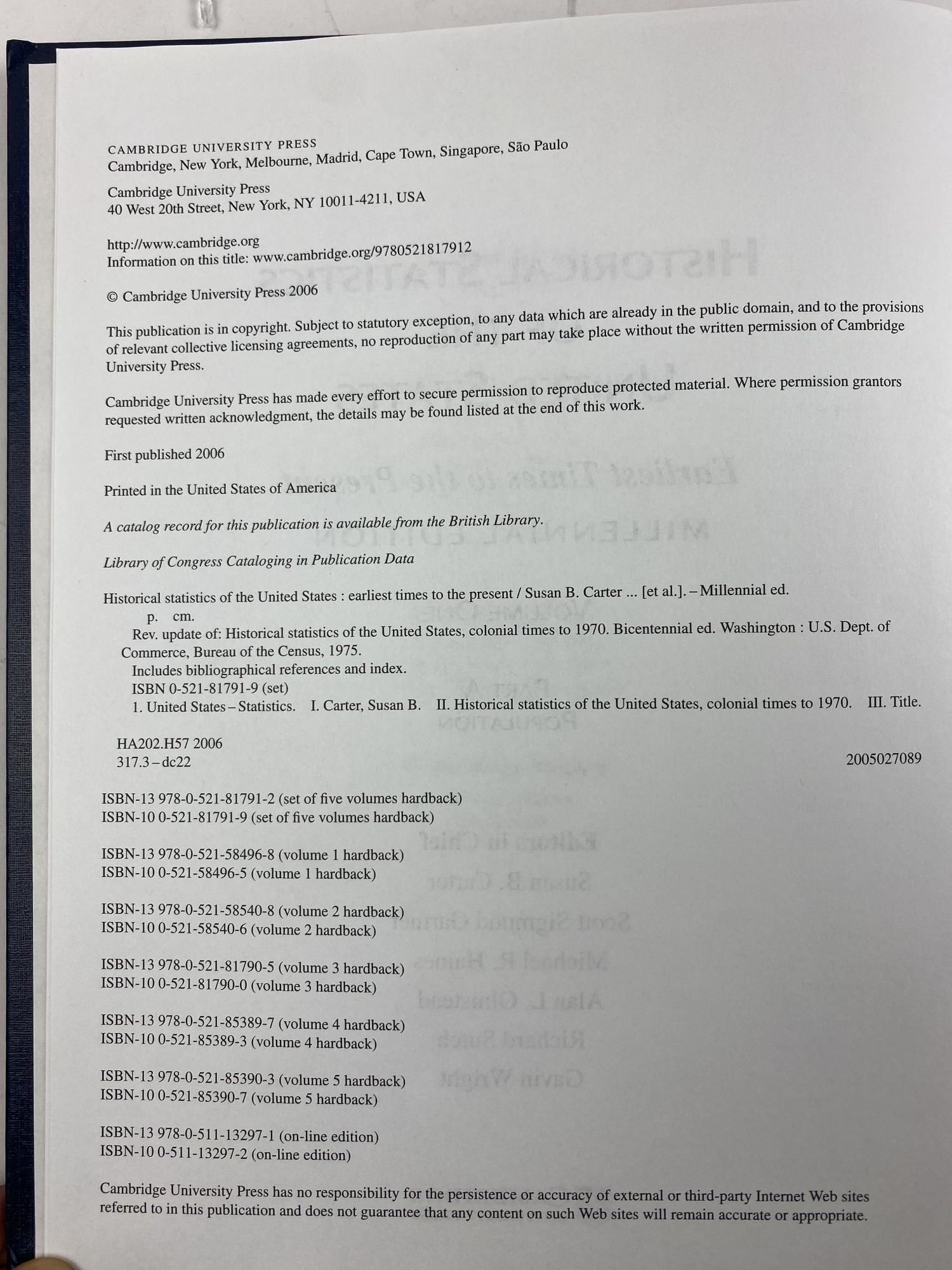 HISTORICAL STATISTICS OF THE UNITED SATES [FIVE VOLUMES]