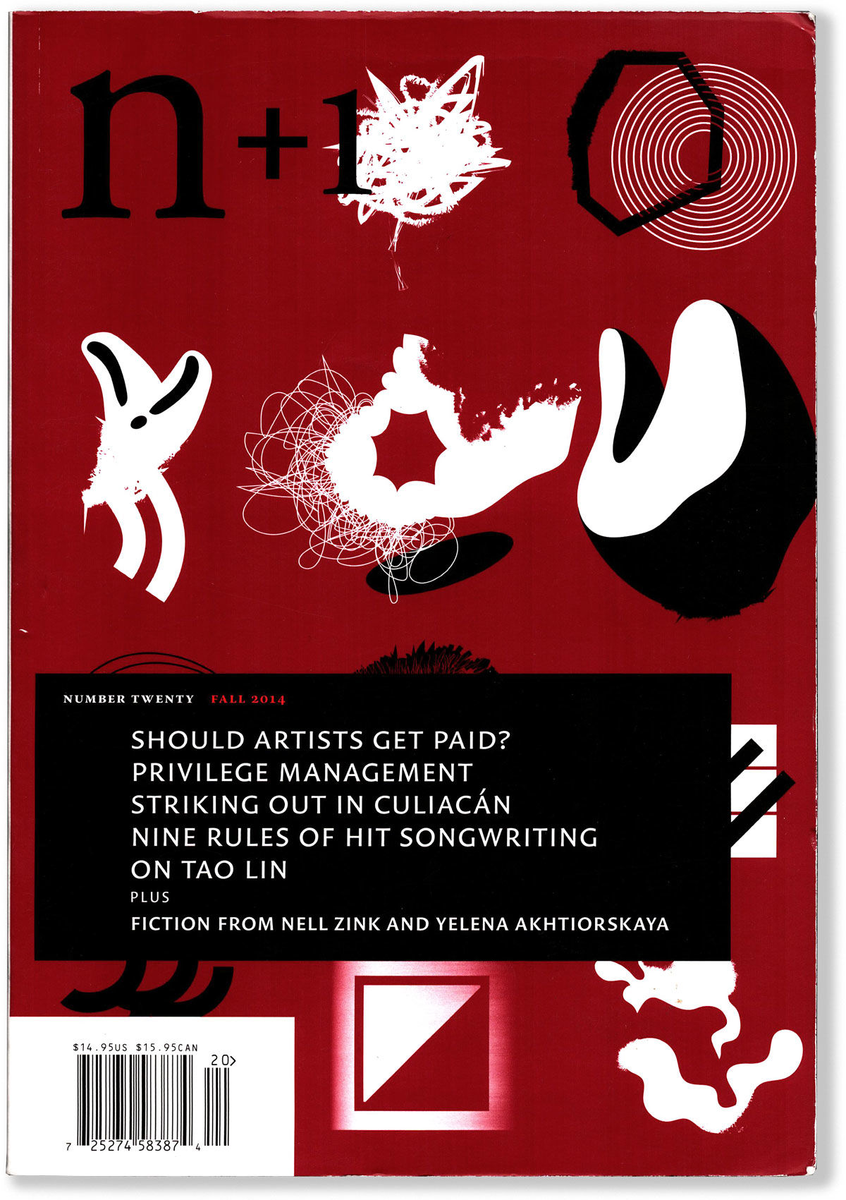 Brooklyn: N+1, Fall 2014. First Edition. Illustrated wrappers; large 8to. 180 pp. Signed by Nell Zink at her contribution pp 23-29. An excerpt from her then forthcoming first novel which was a NYTBR notable book; she followed up with MISLAID, the first by a major publisher, which was nominated for an NBA. Light wear, but near fine.