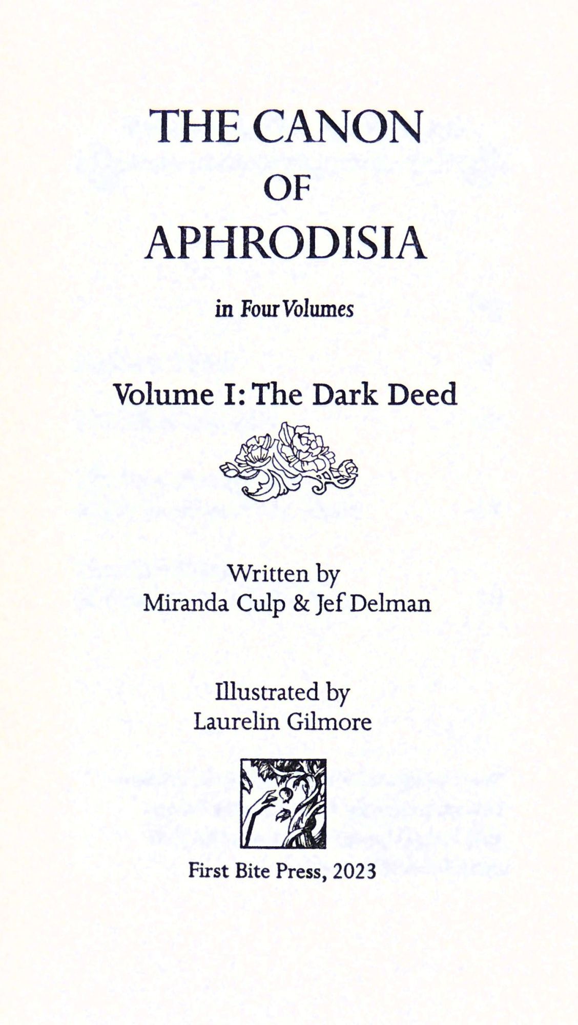 Portola Valley, CA: First Bite Press, 2023. Hardcover. Fine. Hardcover. Number 9 of 100 standard copies of this four volume collection.There were also 25 copies in the deluxe edition. First Bite Press was founded by Stephanie K. Dolin to produce fine press books with original erotic and romantic writing. Dolin writes on her press website: "First Bite Press publishes limited edition books in a genre of fiction that is currently not being produced by fine press printers. Romance novels, including those with “steamy” scenes, are the highest grossing genre in fiction. illustrators. Beautiful, high-quality, hand made books to showcase the author’s stories are rare. As a result, what we often lack in fine press books is the fun and exciting exploration of the human condition and imagination through intimate experiences. It seems a natural fit for the tactile experience of reading a handmade book. After a successful career in the legal technology field, Dolin turned her attention to learning the skills necessary to publish, design, and produce limited edition books. With her work at First Bite Press, she wants to create beautiful books where all of the components of a book from the content to the sewing of the bindings, coalesces into a pleasurable, thoughtful experience for the reader."