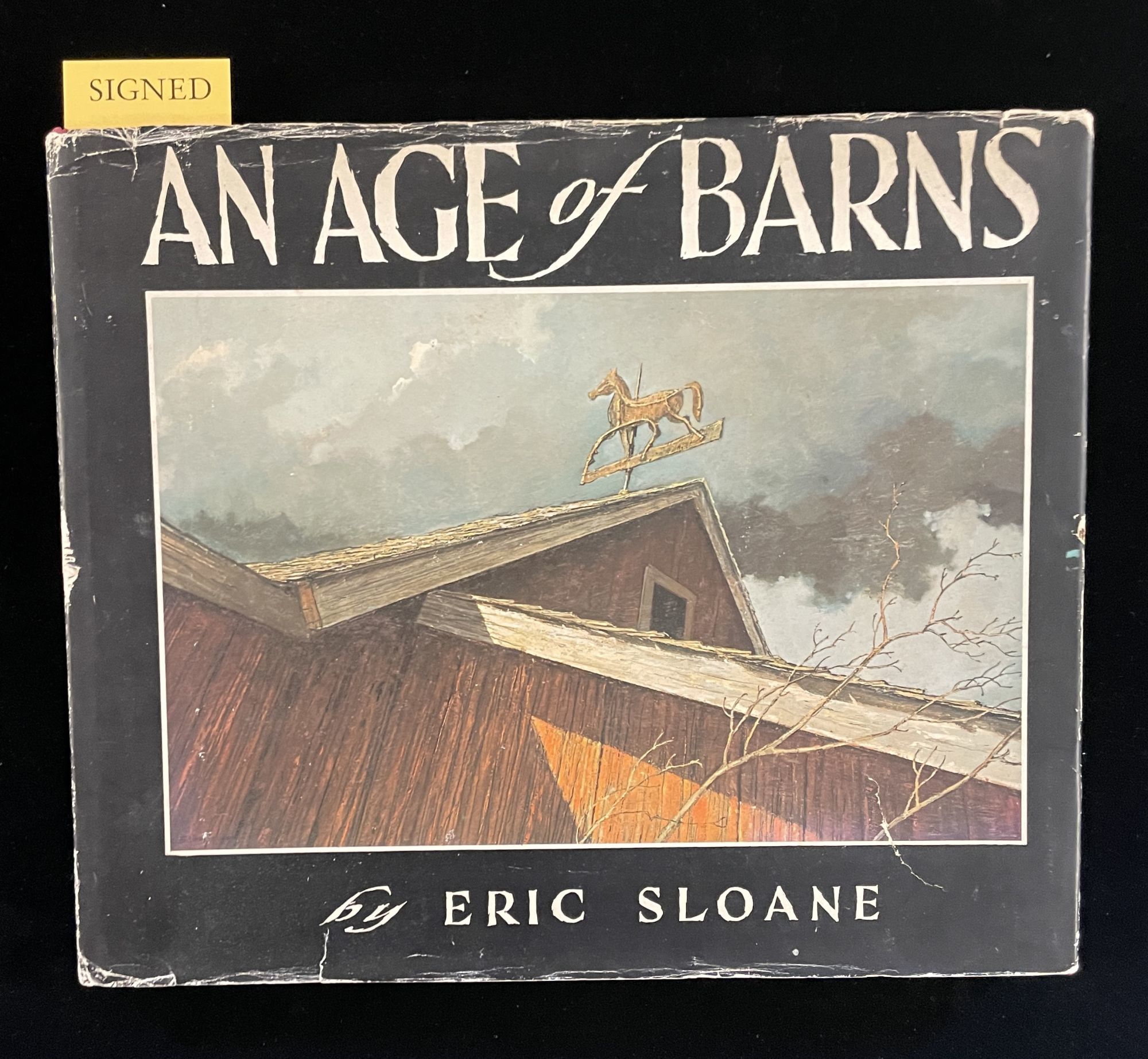 NY: Funk and Wagnall's, 1966. 1st Edition. Hardcover. VG+/Very Good. First edition with an atypical and personal sketch by Sloane on teh ffe. Typically, Sloane sketches covered bridges or tools or whatever is the subject of his book to the inscribee. In this case, Sloane has sketched a Christmas greeting from one couple to another which recalls a shared vacation "(on) the banana boat" and a shared joke about a formation of clouds that resembles a woman's breast and torso; the observing couple, looking skyward, proclaim "look there's a cumulus boobilus". All in all, highly unusual for a Sloane sketch. Dustjacket a little bit worn. A solid - and collectible - copy.
