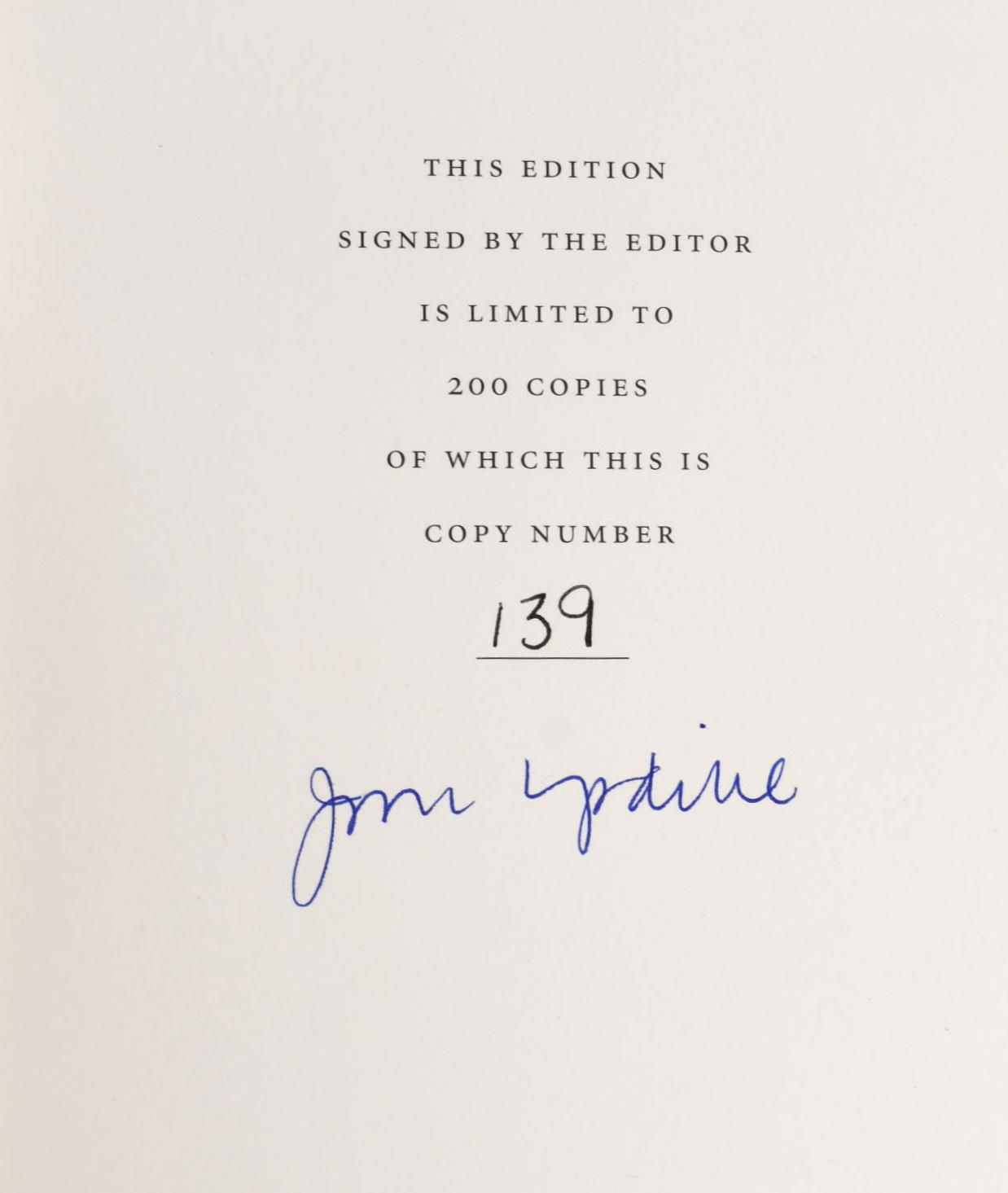 Boston: Houghton, Mifflin, 1999. Limited Edition. Hard Cover. Fine binding. Signed. Large 8vo.; in the publisher's red cloth binding with titling in gold to the spine, and housed in the publisher's slicpcase; xxiv, [1], 2-775, [776] pages; the shrinkwrap is present, though we removed it neatly from the spine so that we could examine the book; the edition is limited to 200 copies, of which this #139 signed by Mr. Updike. Fine binding.