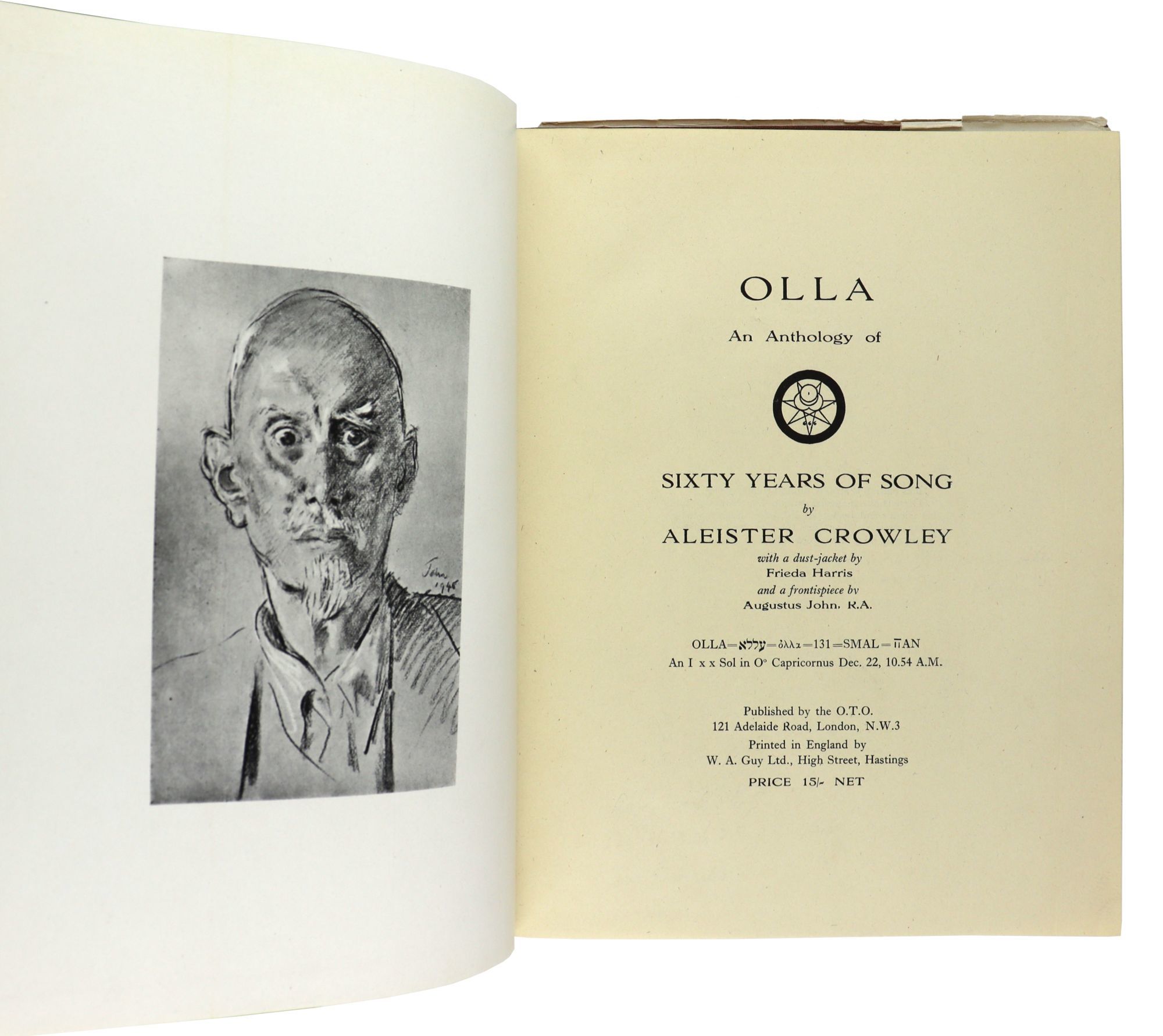 London: Published by the O.T.O. / Printed in England by W.A. Guy Ltd, 1946. Very Good/Very Good -. London: Published by the O.T.O. / Printed in England by W.A. Guy Ltd., [ca. 1946]. First Edition, limited to 500 copies. Quarto. 128 pp. Frontis. Publisher's dust jacket designed by Lady Frieda Harris, "artist executant" of the Thoth tarot deck. Brown cloth boards stamped in gilt with Crowley's "Mark of the Beast" to front. OCLC gives 1946 and 1947 as publication dates; scarce in dust jacket.
