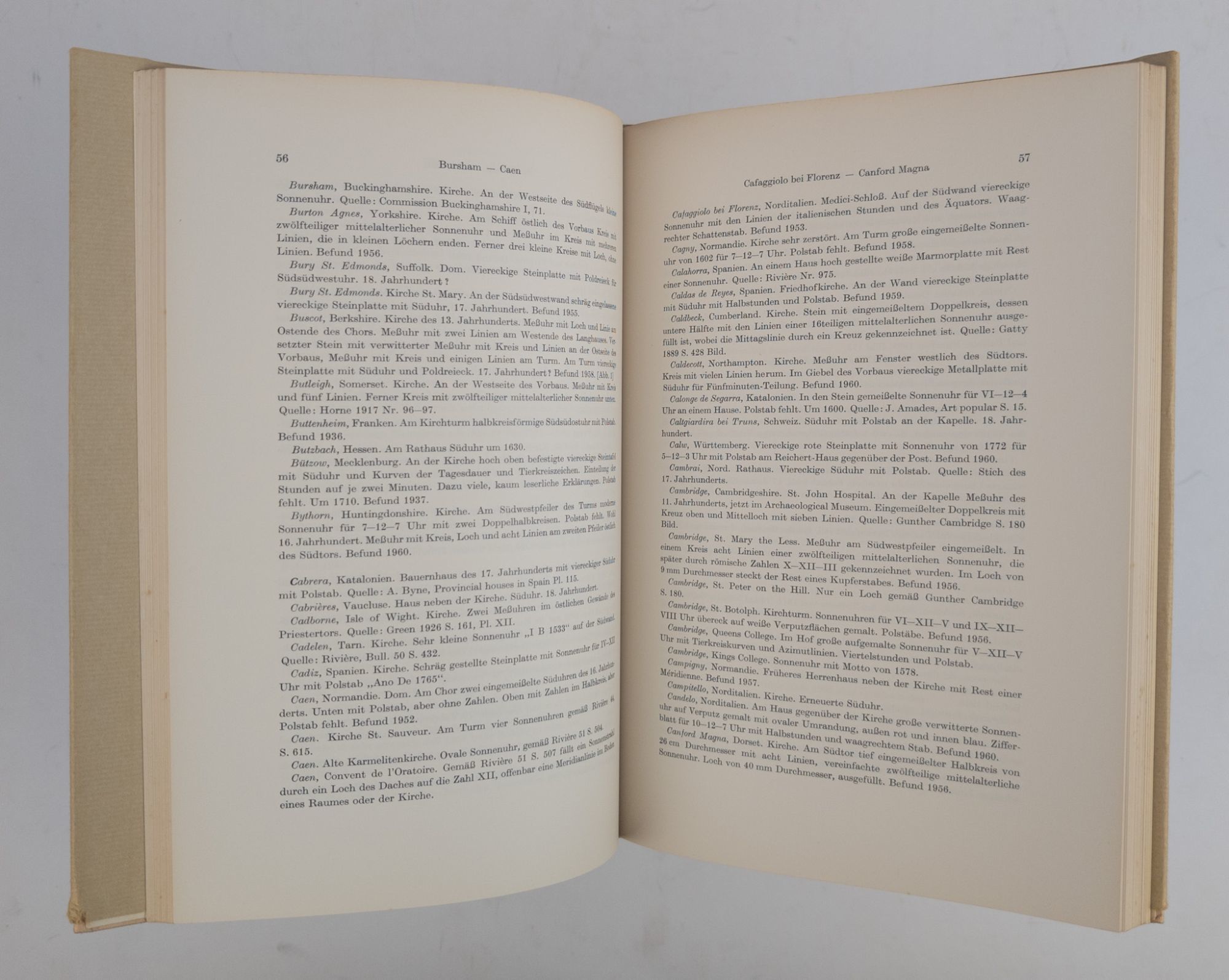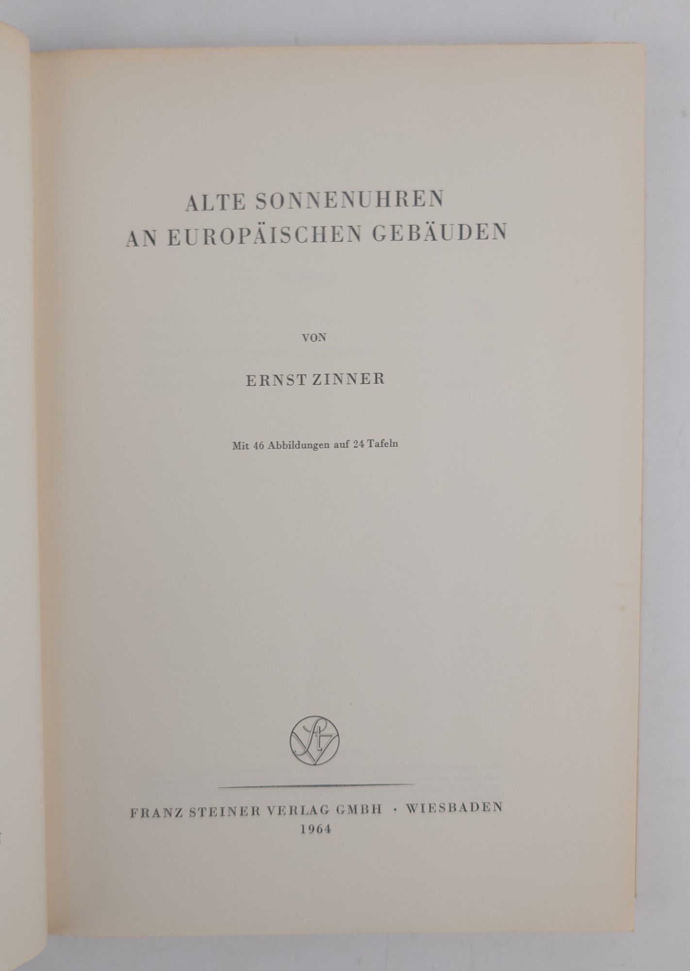 Wiesbaden: Franz Steiner, 1964. Hardcover. Octavo, 223 pages with 46 illustrations on 24 plates. In Good plus condition with Good plus dust jacket. Tan spine with dark blue text. Dust jacket has chipping to corners and spine edges, tearing to tail edge of rear cover, light scratching to rear cover, light surface tearing to rear cover, and mild shelf wear. Boards have bumping to bottom corners. Textblock has light foxing to edges and foxing to pages in forward and rear. Shelved in Room G. From the collection of Silvio Bedini. Bedini spent twenty five years at the Smithsonian Institution, serving as curator in the Department of Mechanical and Civil Engineering in the new Museum of History and Technology (now the National Museum of American History) before serving as first Assistant Director then Deputy Director of the National Museum of History and Technology. He then served as Keeper of Rare Books at the Dibner Library of the History of Science and Technology, a branch of the Smithsonian Institution Libraries, before becoming a Historian Emeritus. He specialized in early scientific instruments. 1378684. Special Collections.