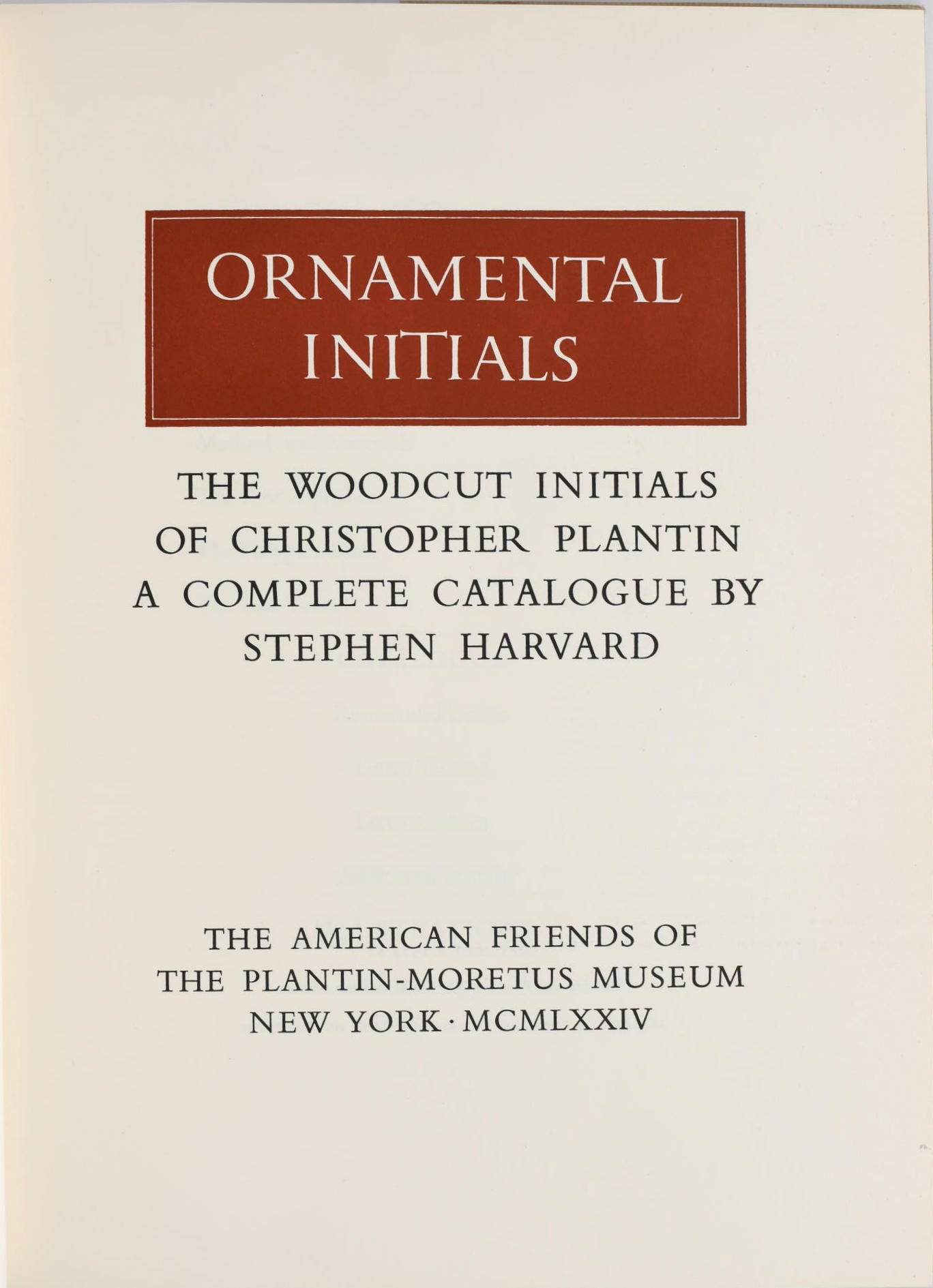 {TYPOGRAPHY] ORNAMENTAL INITIALS. THE WOODCUT INITIALS OF CHRISTOPHER PLANTIN. A COMPLETE CATALOGUE BY STEPHEN HARVARD