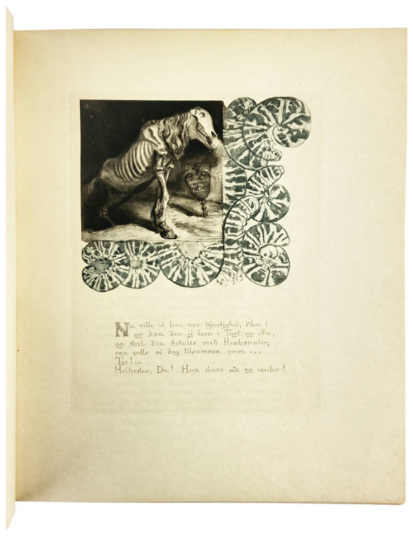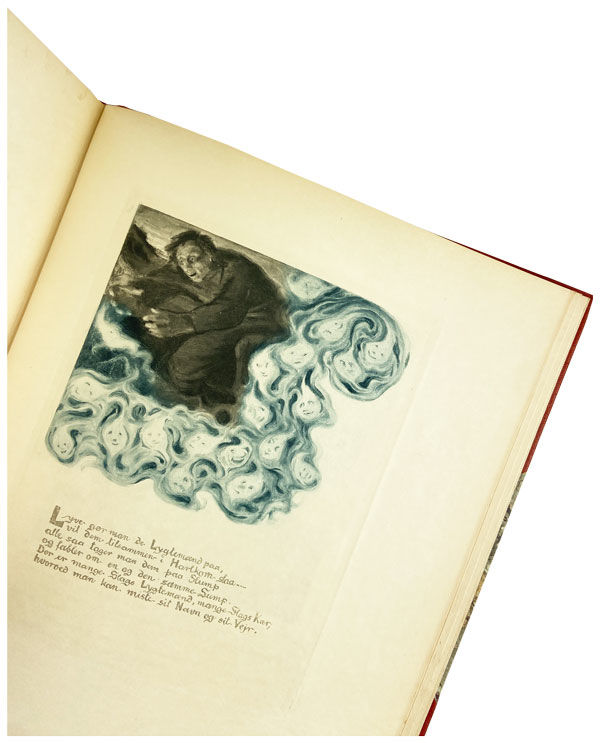 Kjobenhavn [Copenhagen]: Ernst Bojesens Kunstforlag, 1890. Very Good +. Kjobenhavn [Copenhagen]: Ernst Bojesens Kunstforlag, 1889-1890. First Edition. Folio. 202 pp. + index. Chapter heading illustrations; in-text vignettes; illustrated full-spread title page here bound in to front and rear. Printed ownership page for "L.E. Winding" tipped-in preceding title, with prospectus included at rear. Bound in 20th-century half morocco over marbled boards with gilt decoration to spine; all edges gilt. Blind binder's stamp of Oscar Jacobsen to rear pastedown. Printed on Japanese paper, per a prior pencil note on front pastedown; certainly a higher-quality paper than a companion copy we handled alongside. Light wear to edges and joints with patchy soiling. Binding is sound. Ownership stamp to front pastedown ("SJL"), else interior unmarked. Handsomely bound collection of Danish fantasies and fables from the Modern Breakthrough poet.