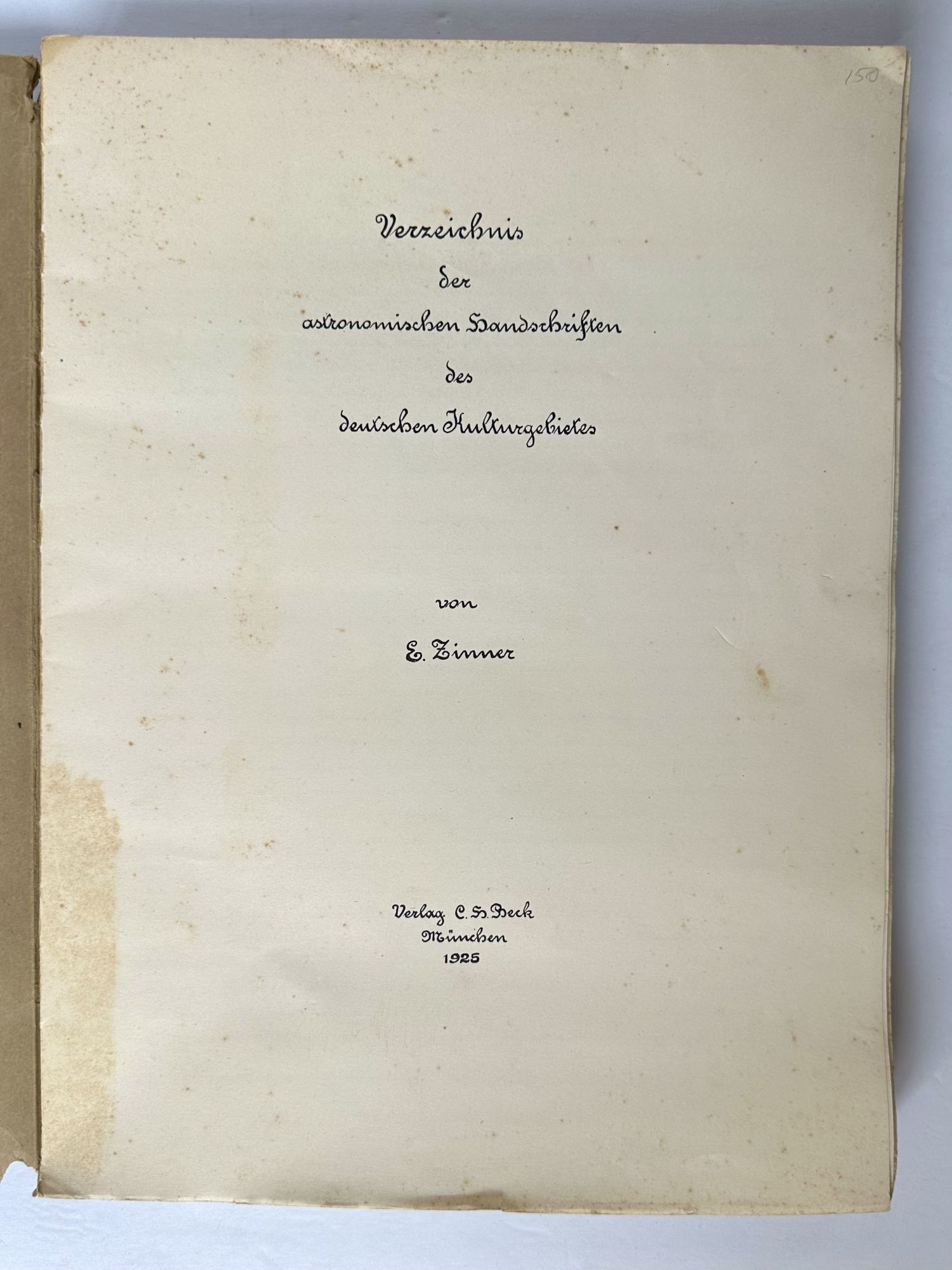 VERZEICHNIS DER ASTRONOMISCHEN HANDSCHRIFTEN DES DEUTSCHEN KULTURGEBIETES