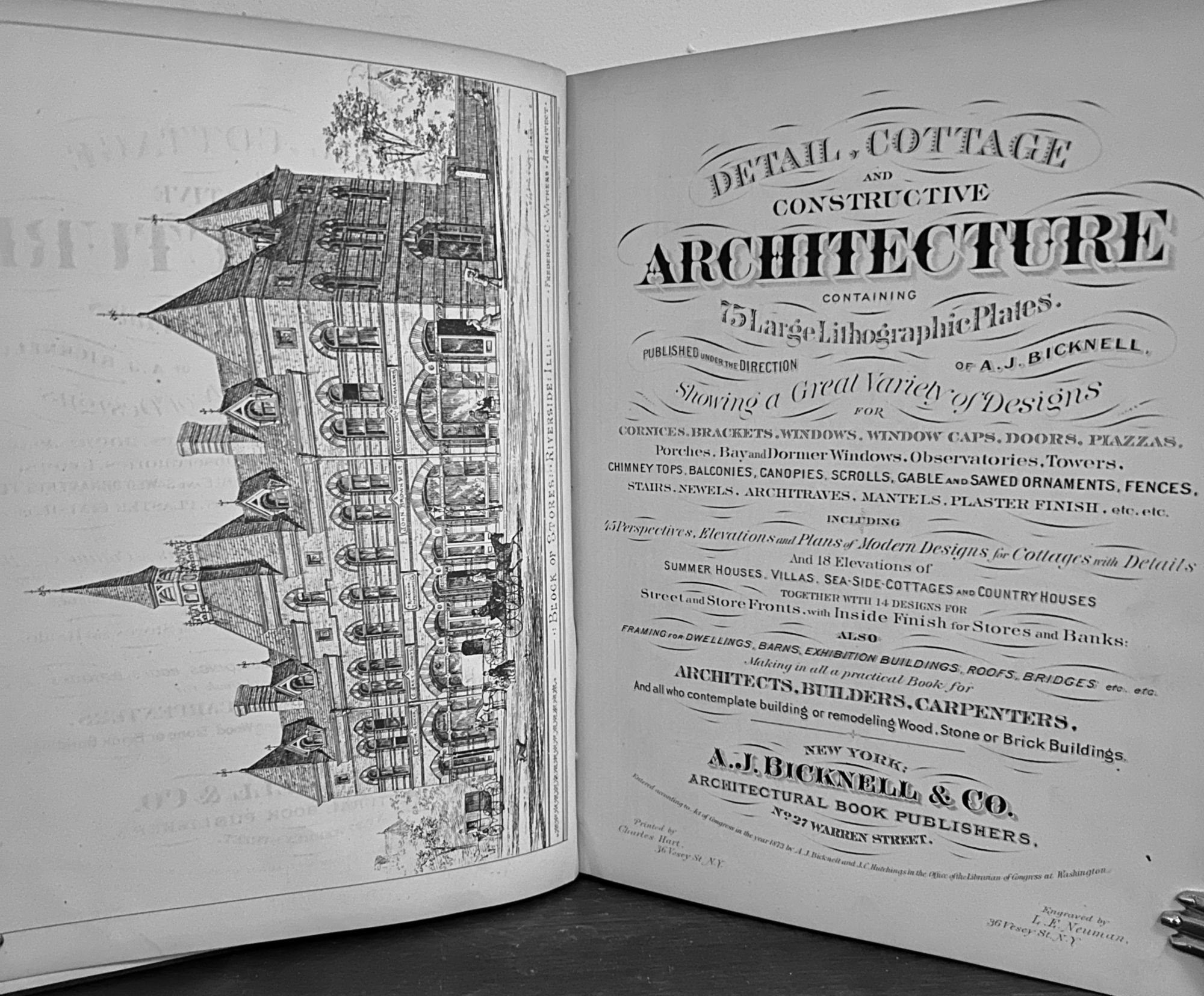 Detail, Cottage And Constructive Architecture Containing 75 Large Lithographic Plates.; Showing a Great Variety of Designs For Cornices, Brackets, Windows, Window Caps, Doors, Plazzas, Porches, Bay and Dormer Windows, Observatories, Towers, etc...